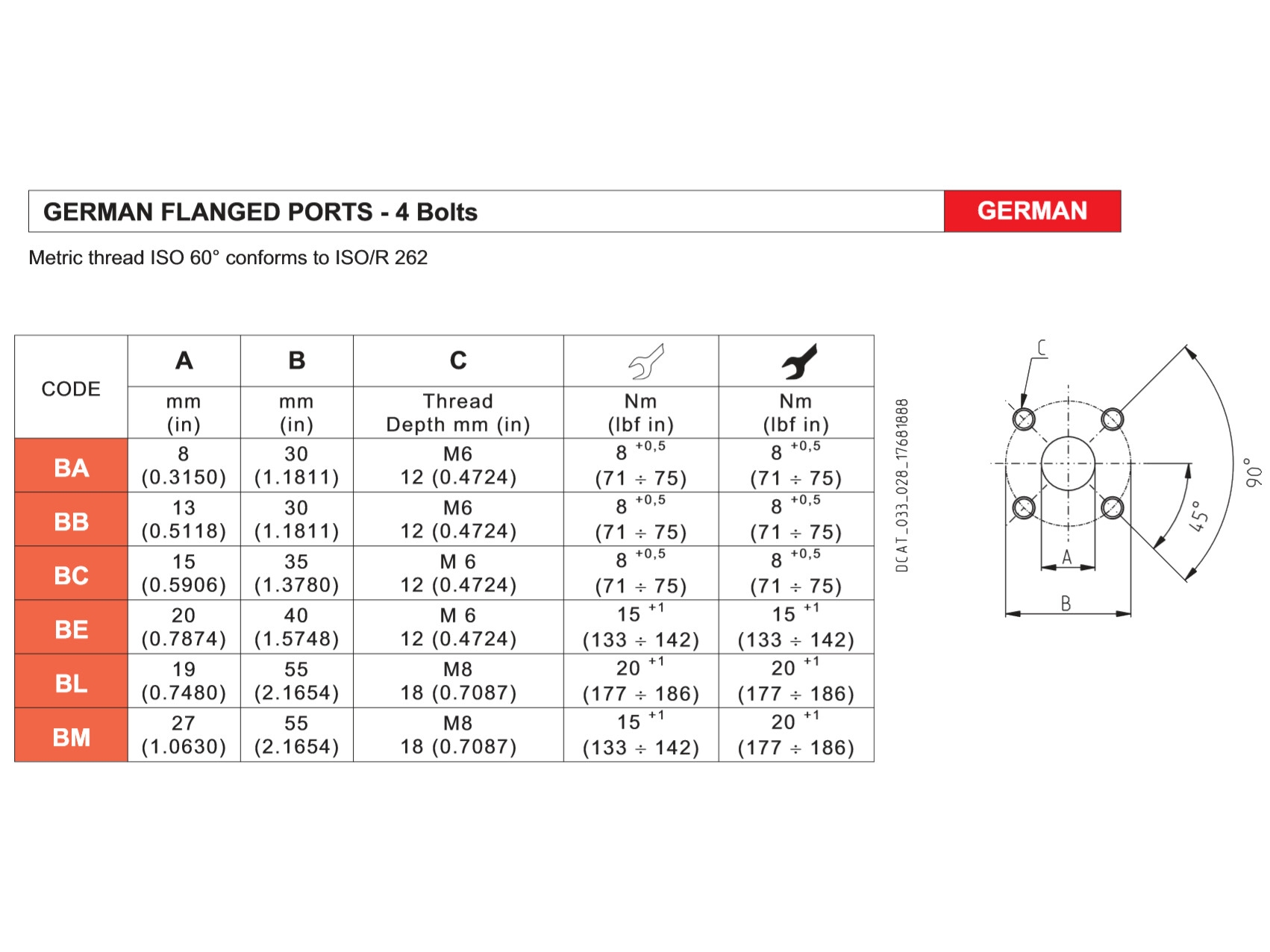 Flange (B2): German standard, rectangular. Mounting bolts distance: 72 x 100 mm.