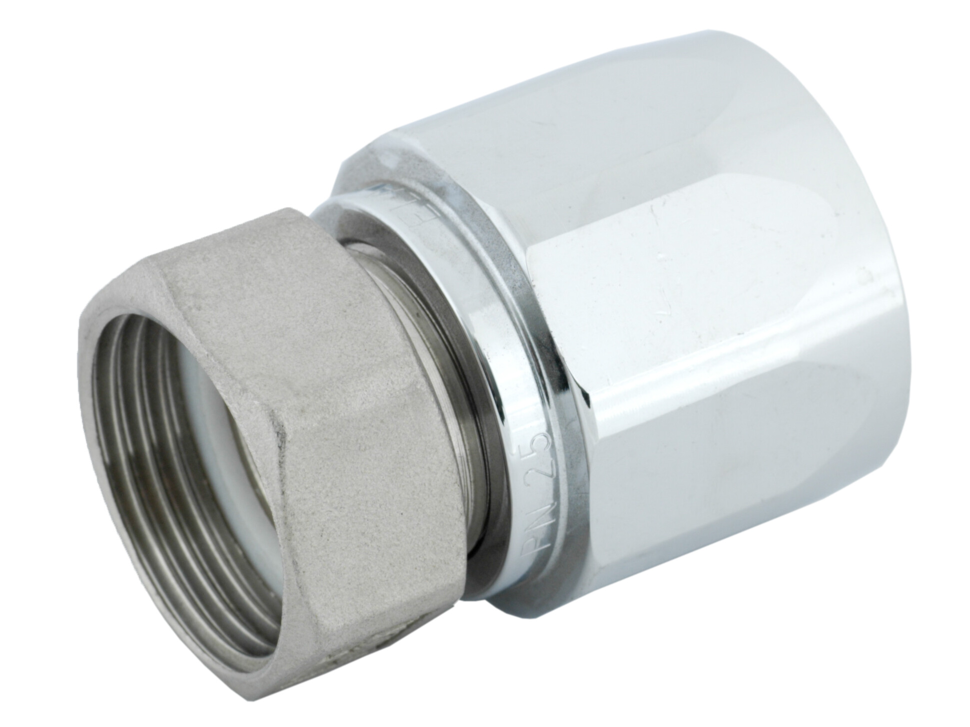 Elaflex forskruning type M-VA. Stuts og omløber i rustfrit stål 1.4571 (316 Ti), skruekappe i forkromet messing.