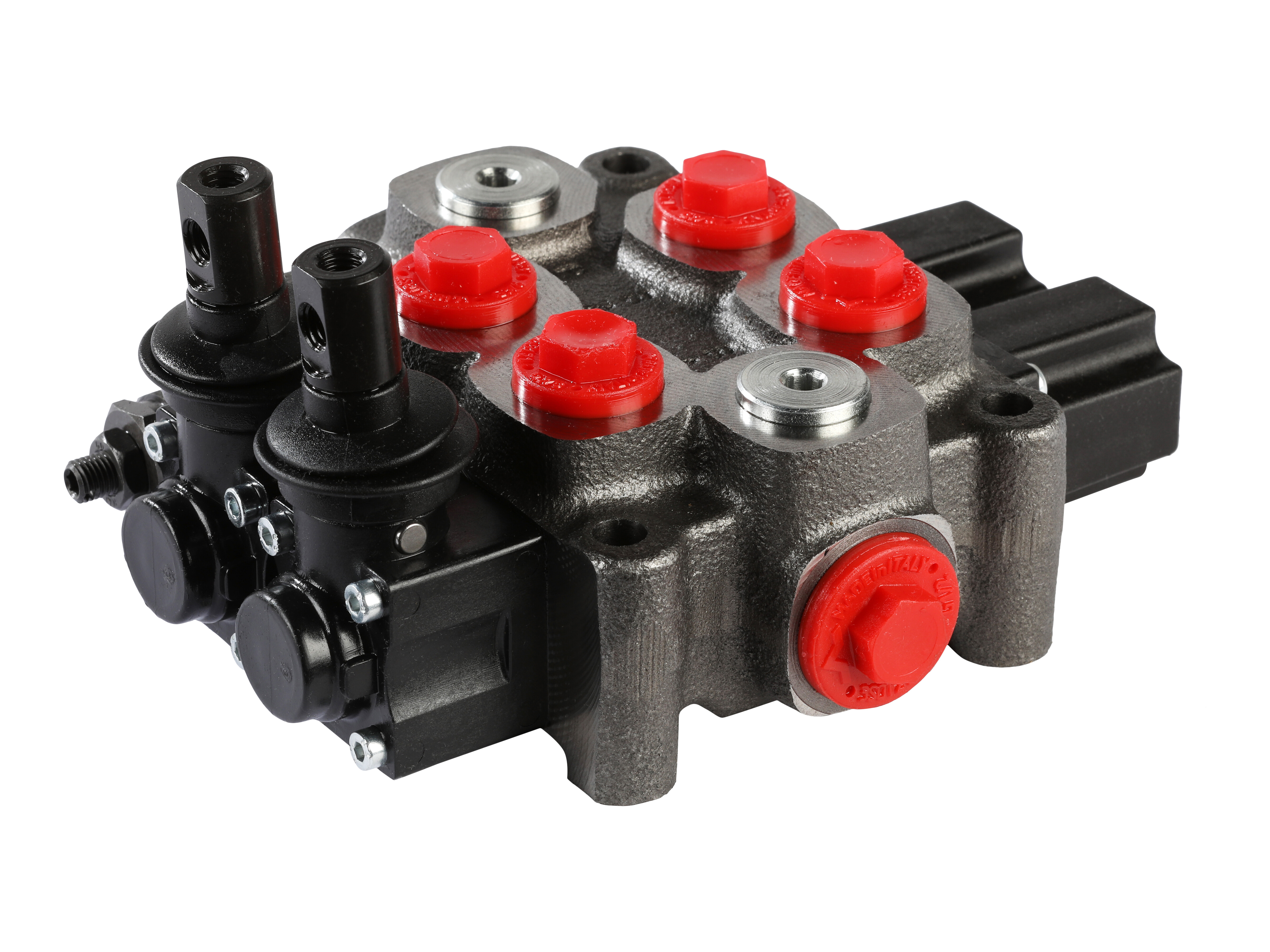 2-section Q25 monoblock directional valve with built-in pressure relief valve. Manually activated