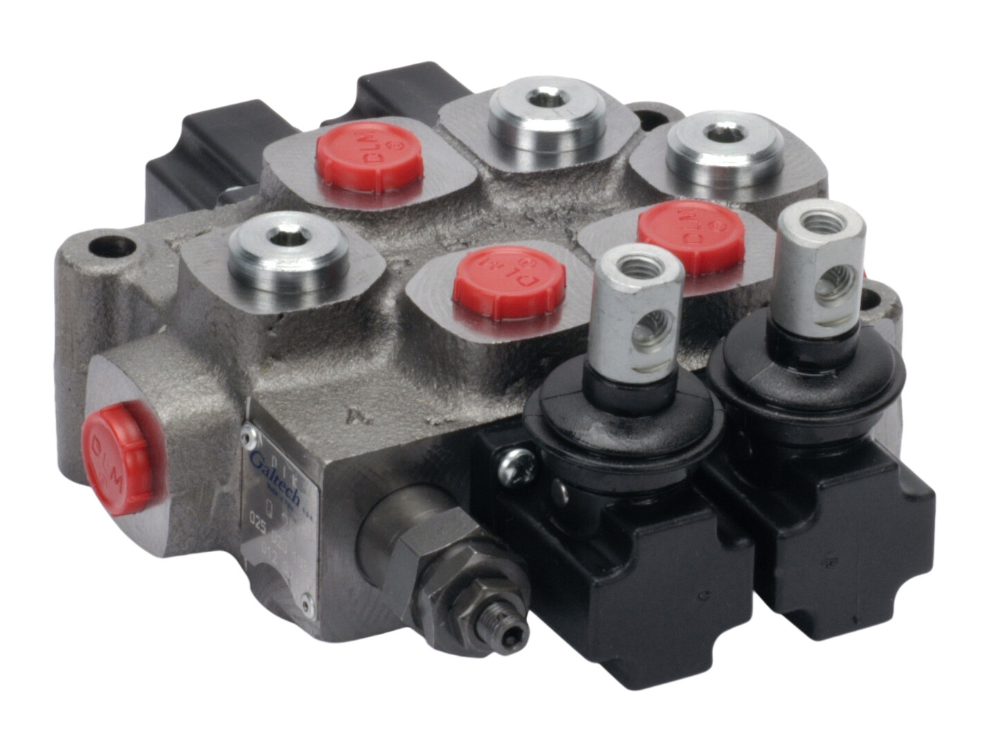 2-section Q25 monoblock directional valve with built-in pressure relief valve. Manually activated