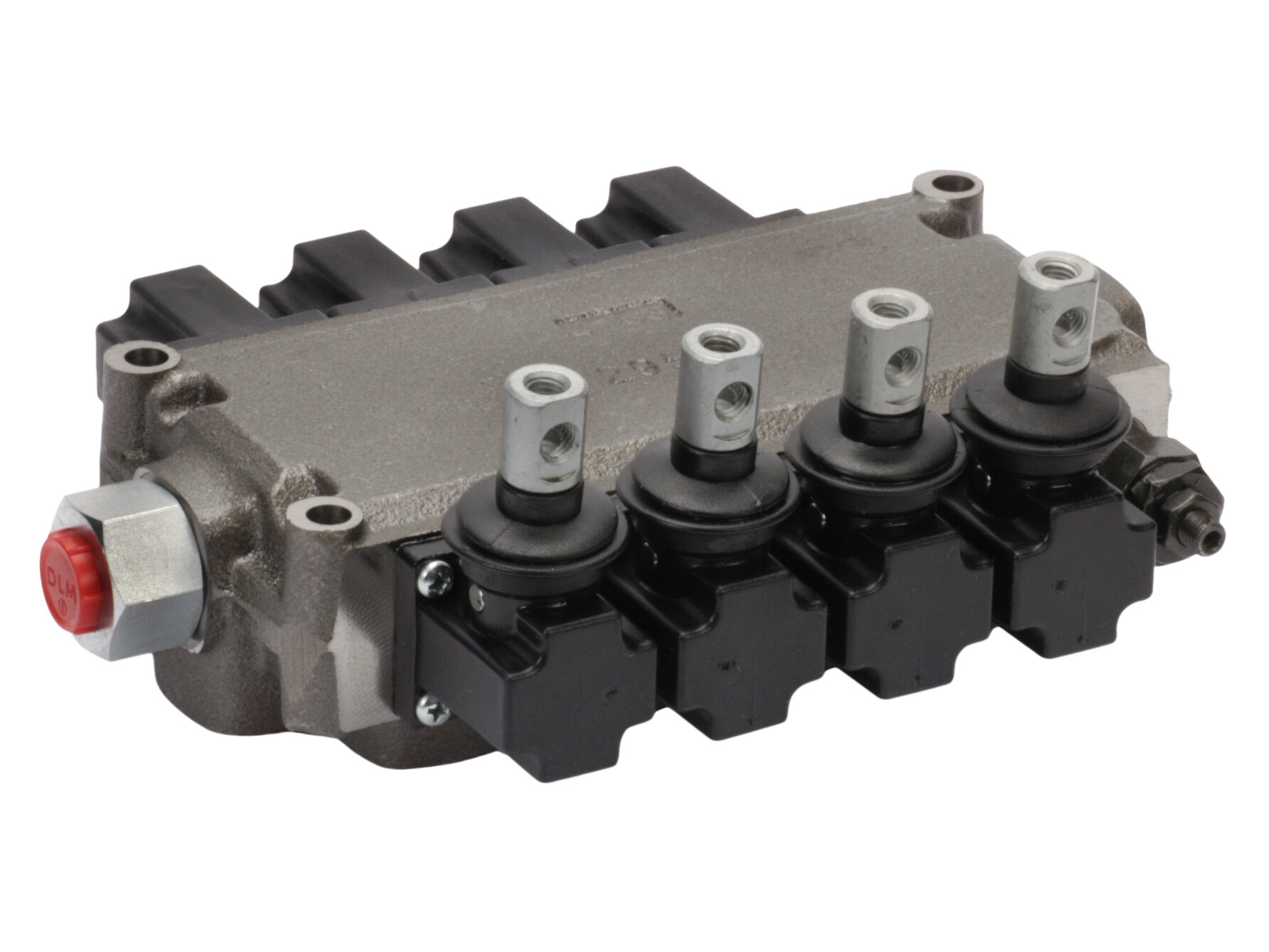 4-section Q25 monoblock directional valve with built-in pressure relief valve. Manually activated
