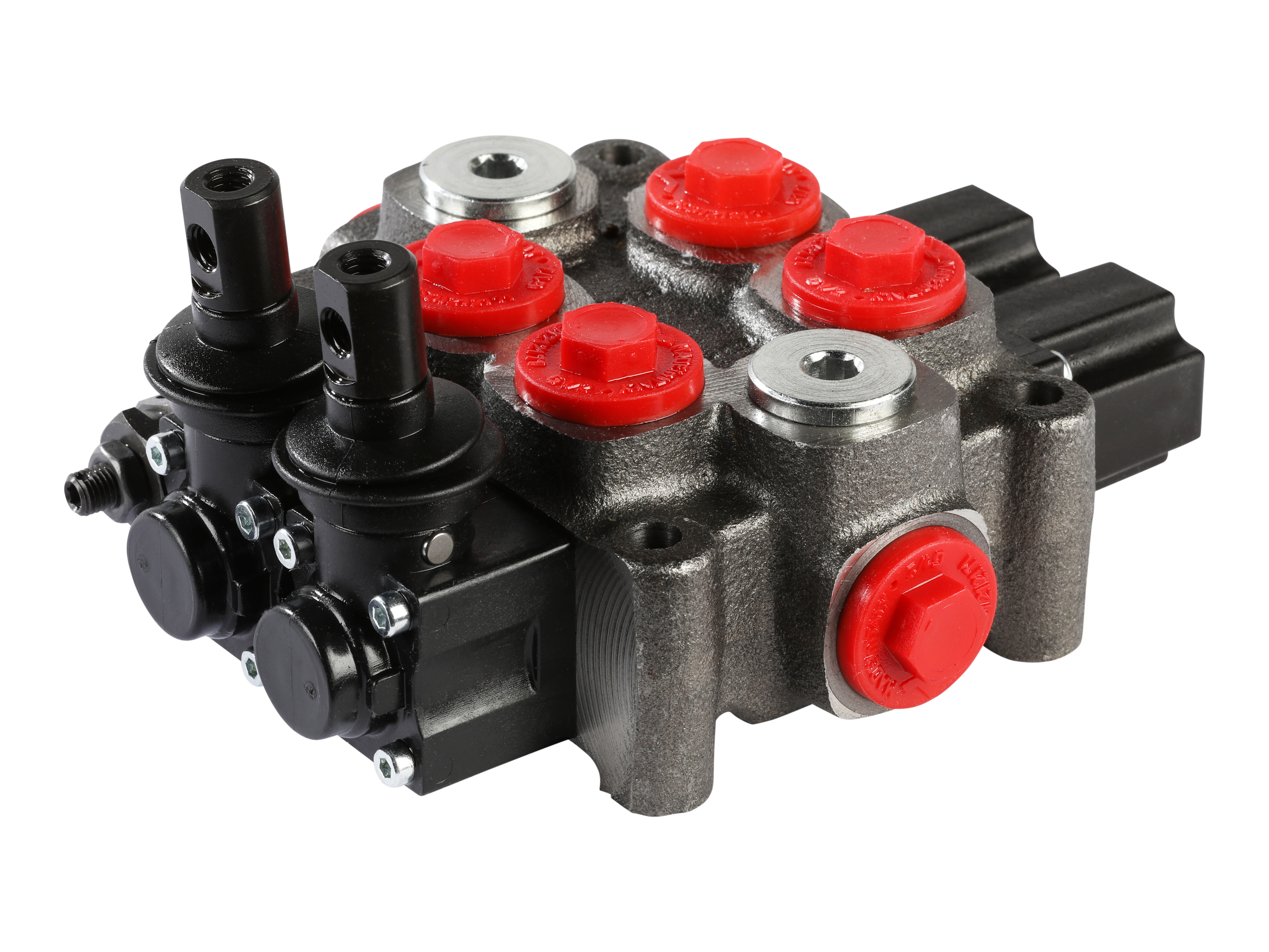 2-section Q45 monoblock directional valve with built-in pressure relief valve. Manually activated