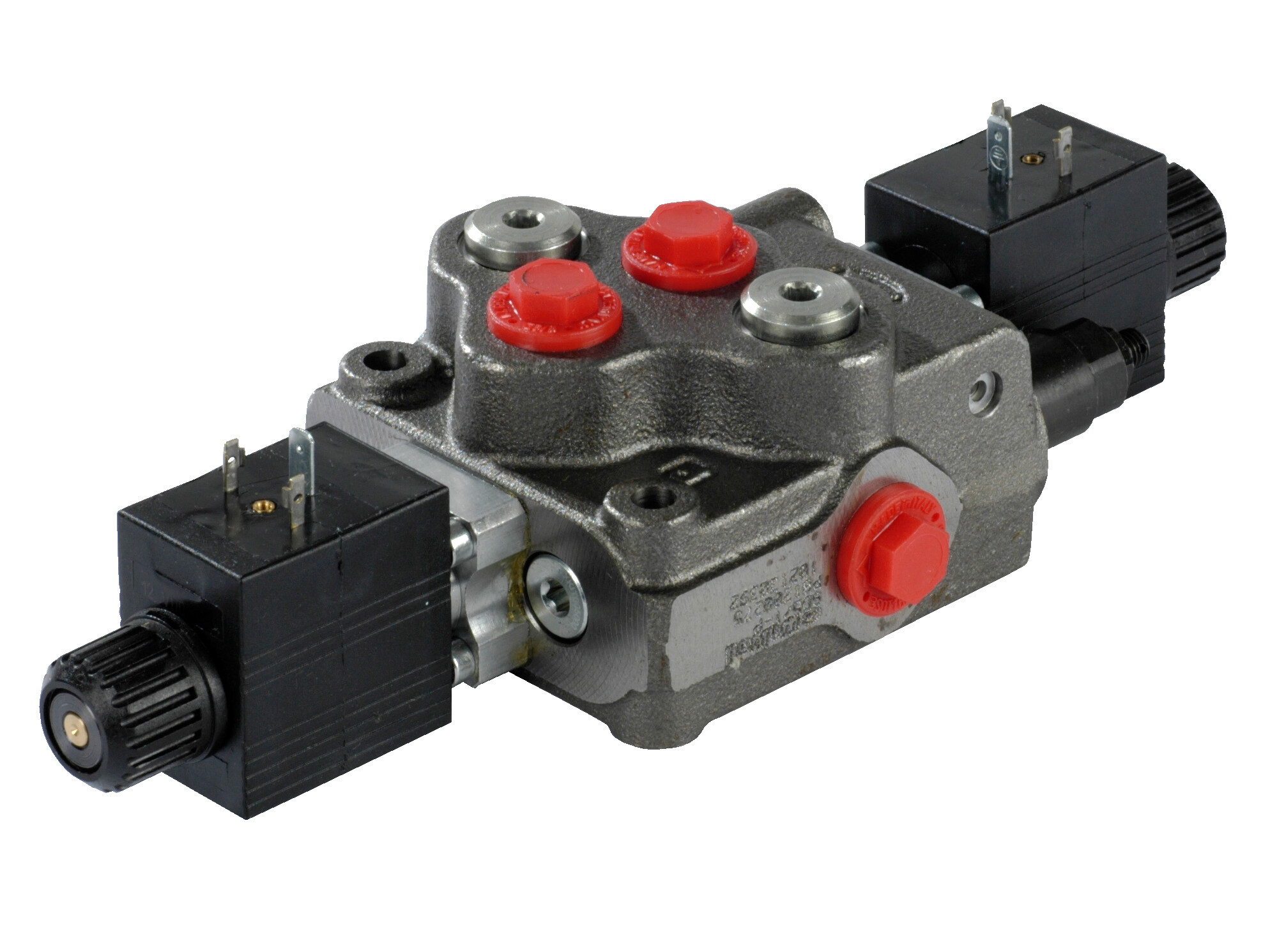 1 section SD5 monoblockvalve with built-in pressure relief valve. Solenoid acticated spool (12 Vdc)