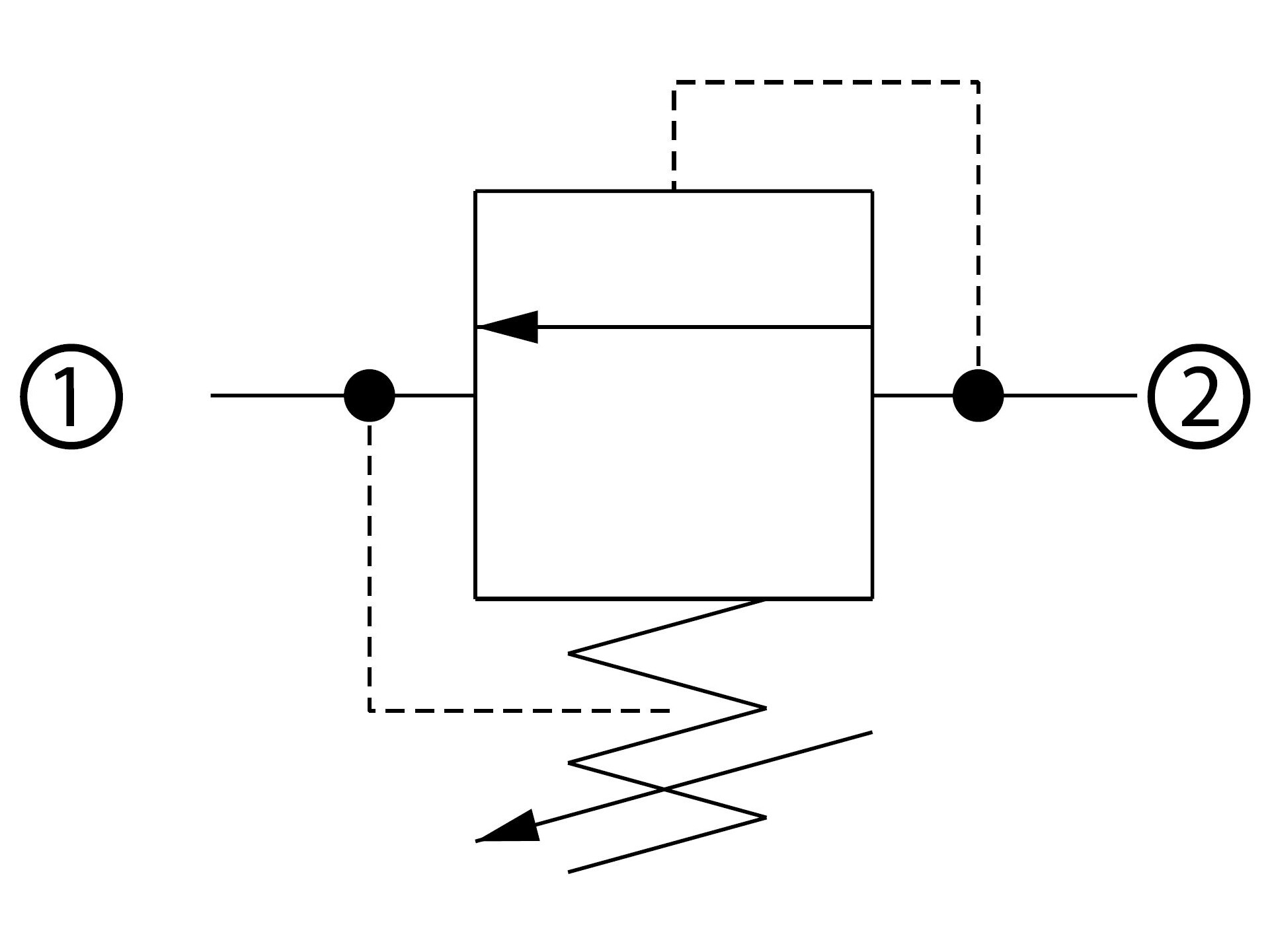 This is a fast acting, differential area, poppet type relief valve that relieves from port 2 to port 1. It can be used to protect an actuator from over-pressurization or to remove pressure spikes.