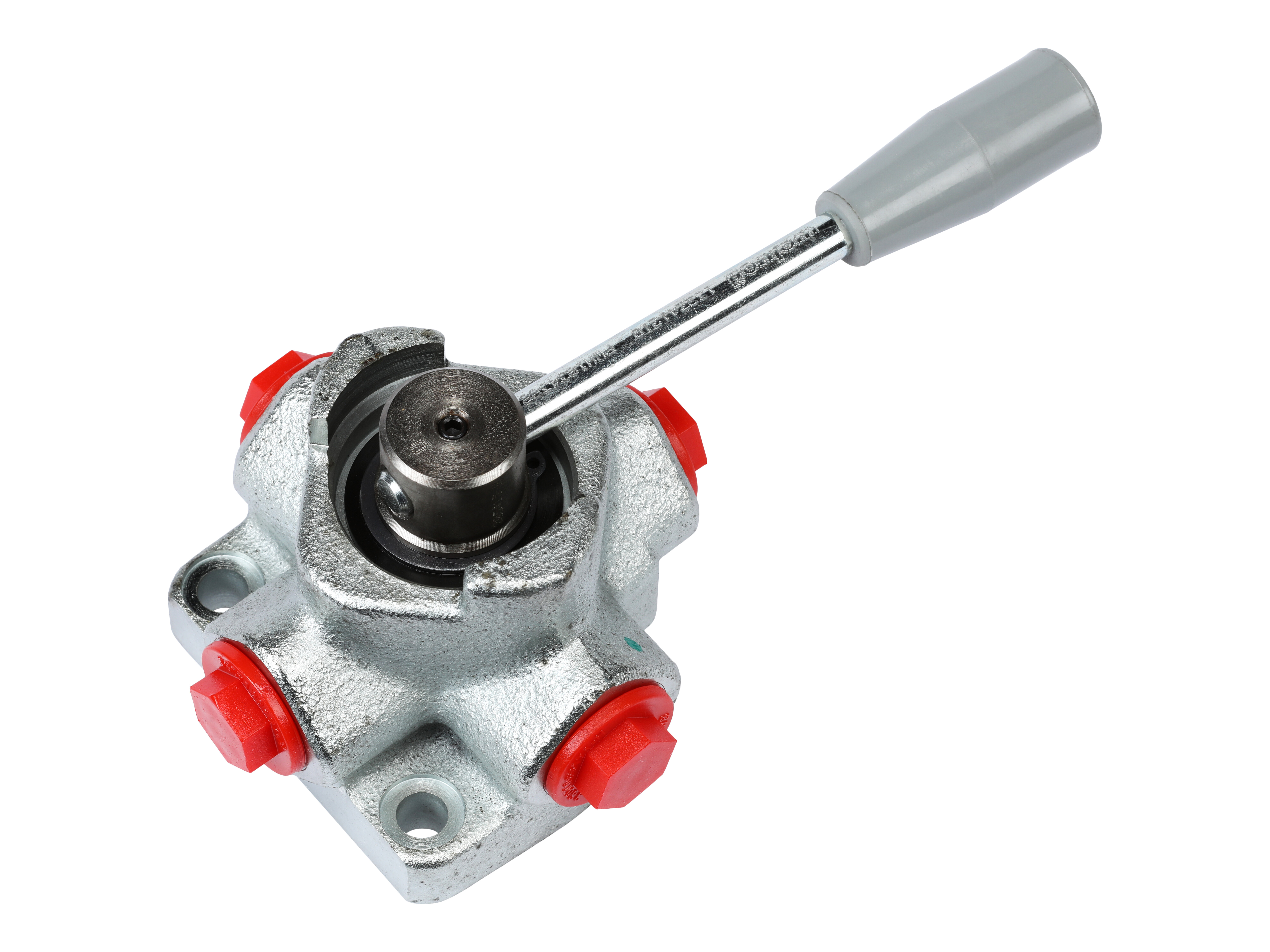 4-way selector valve of pivot-type. If pressure exceeds 25 bar - no change-over is possible.