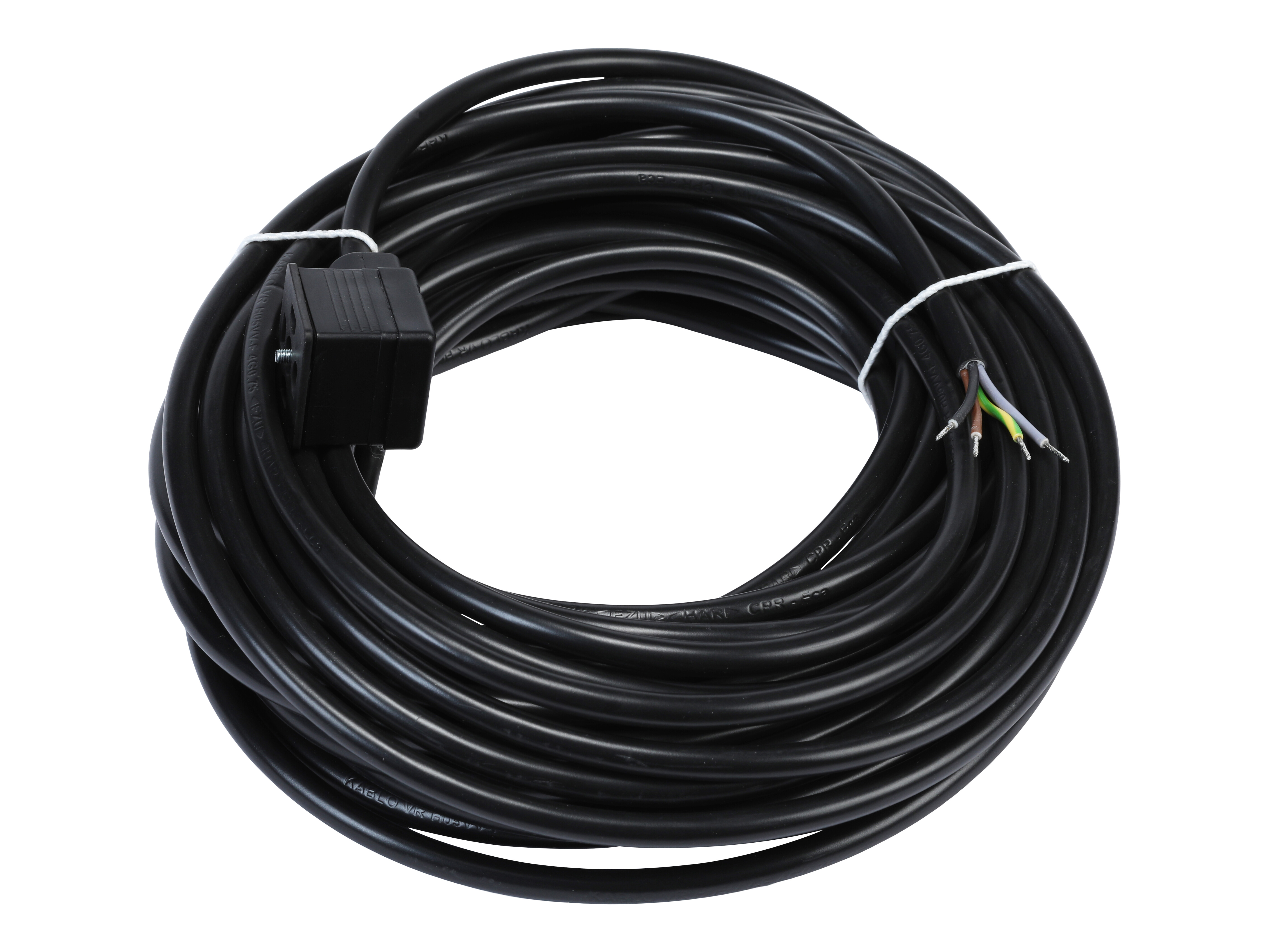 DIN-stik 3pol+jord støbt/med 15 mtr. kabel 12/24/230V AC/DC