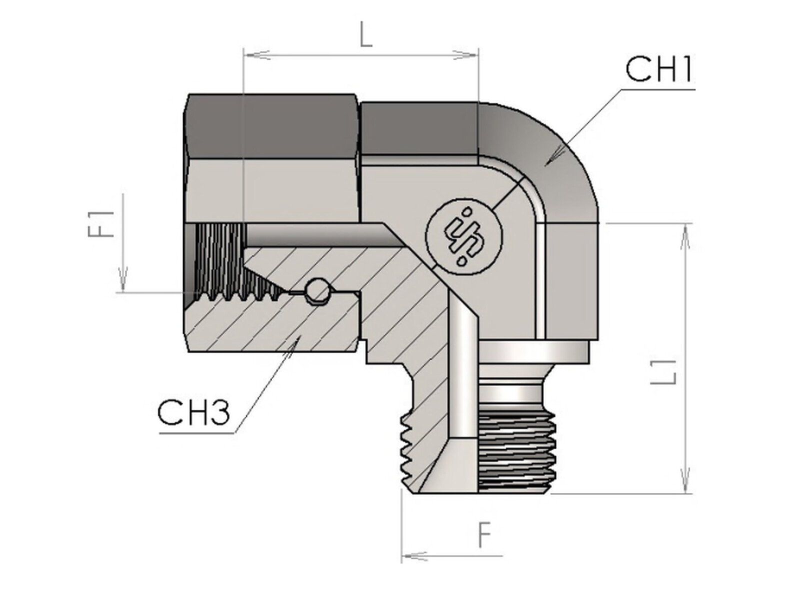 Vinkel 1/8 BSP Fabricated version for seal