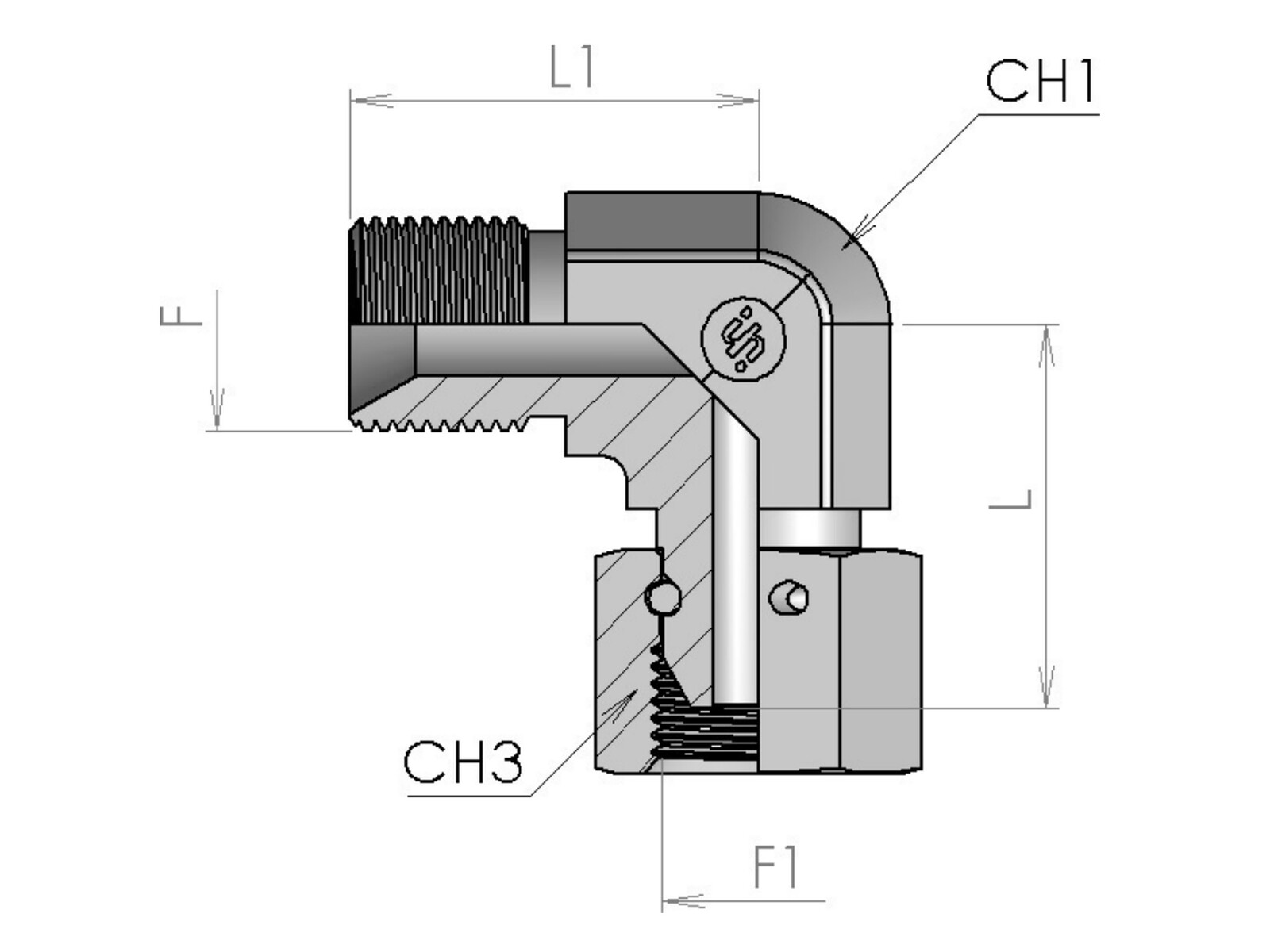 Vinkel 1/8 BSP Fabricated version for seal