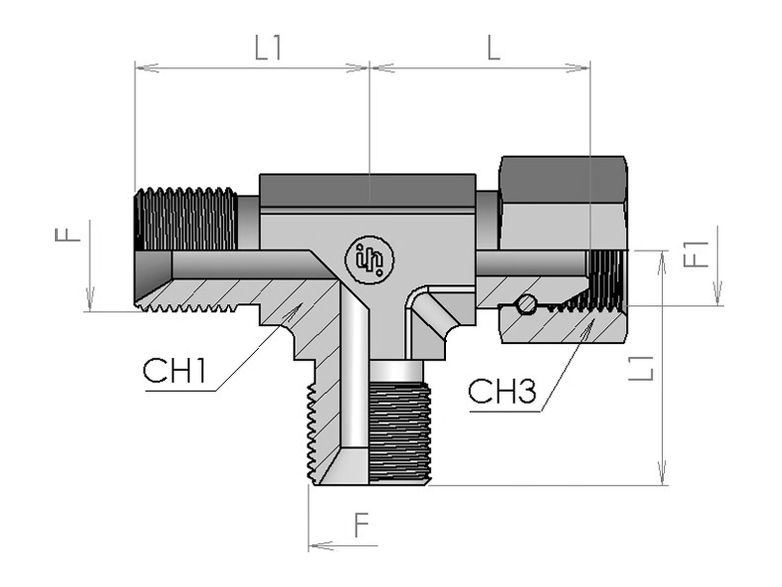 T-adapter for seal-ring - BSP male x BSP union nut x BSP union nut