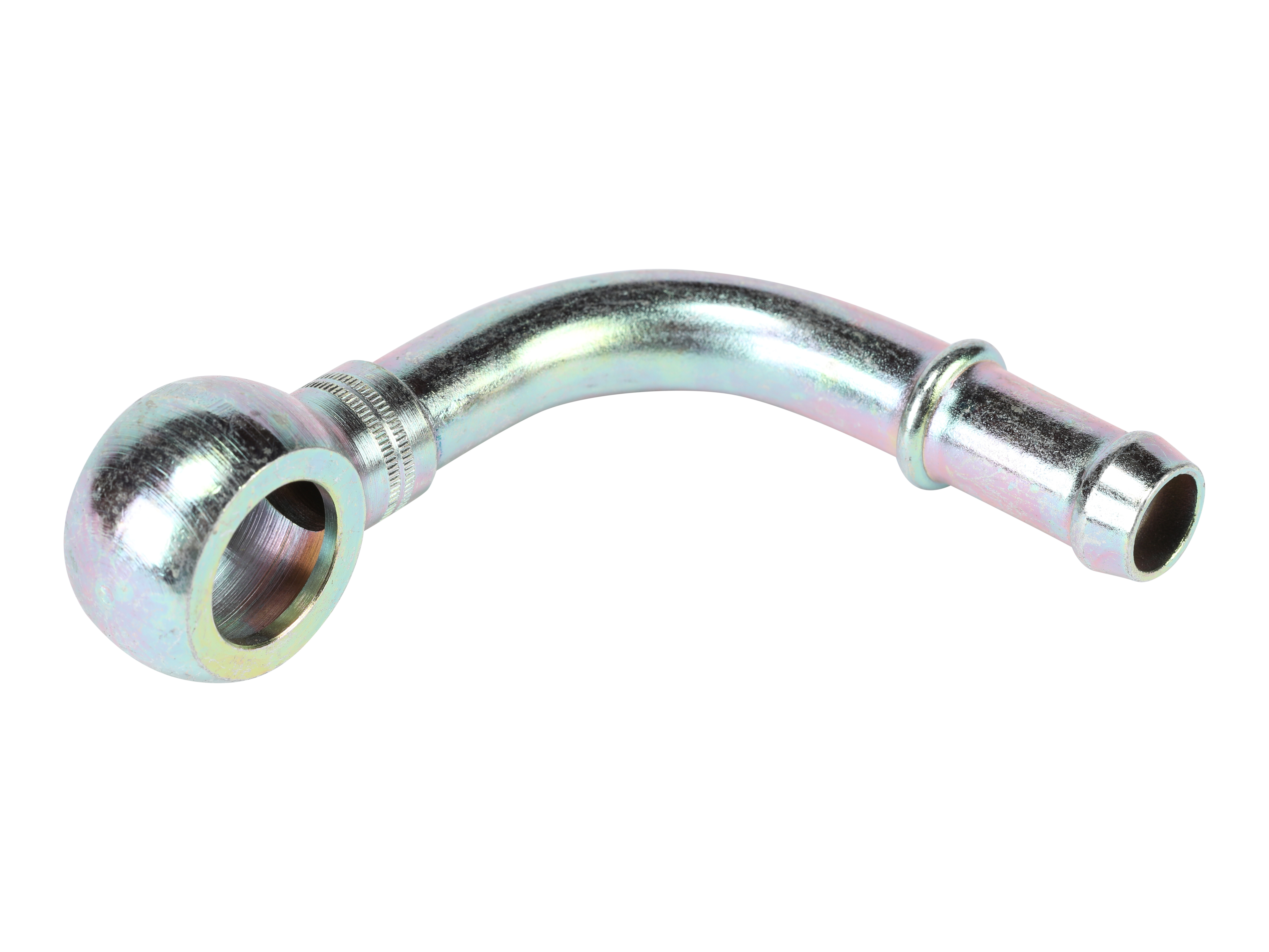 Elbow banjo adaptor with hose connection for mounting in low pressure systems.