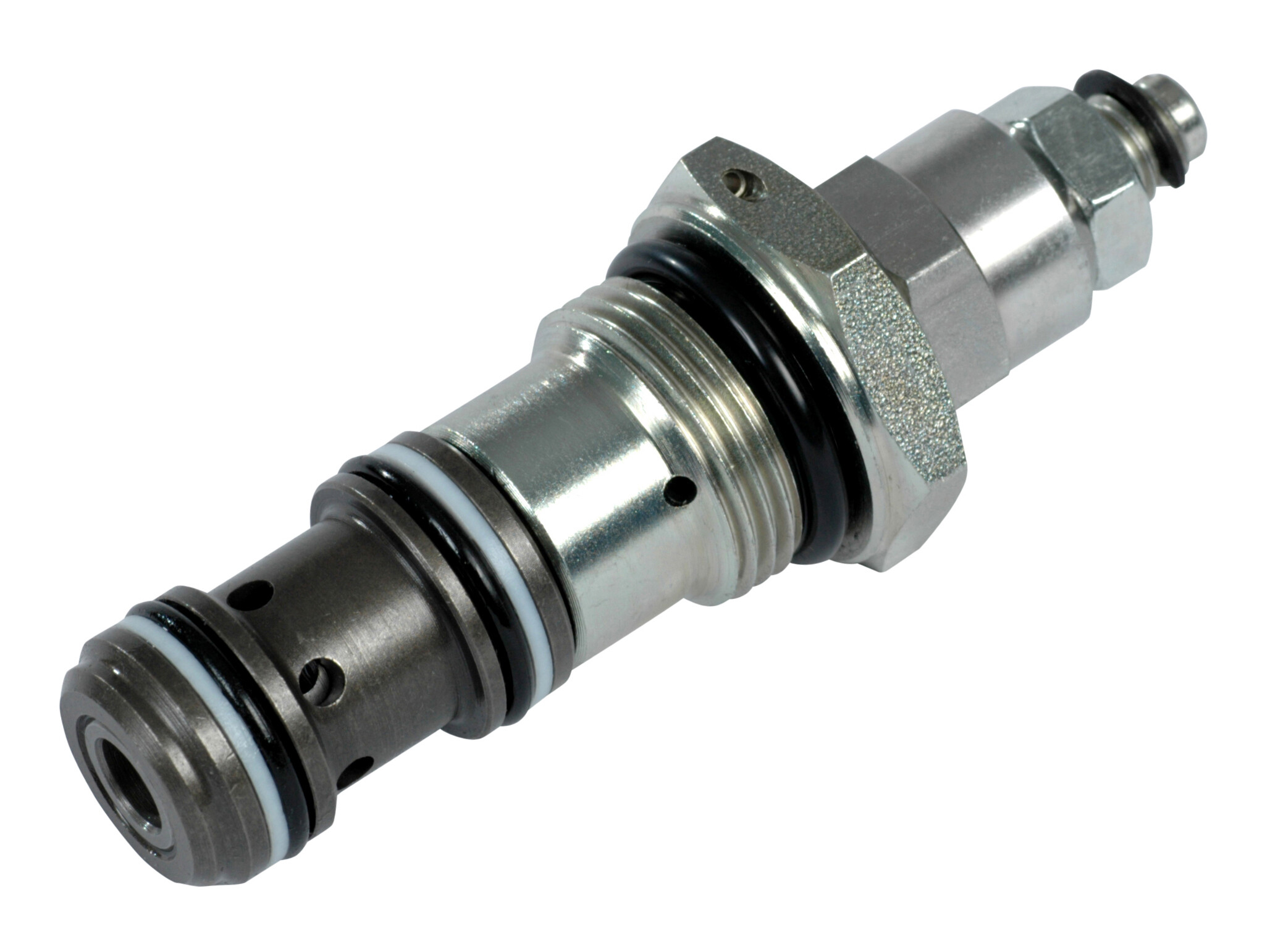 This is a normally open, pilot operated pressure reducing valve. Port 2 is open to port 1 until the setting is reached at which time the valve throttles the outlet flow limiting the pressure. Port 3 is a drain port only, as the valve does not contain a relief function. This valve is ideal for stable and precise control of a secondary pressure within a circuit.