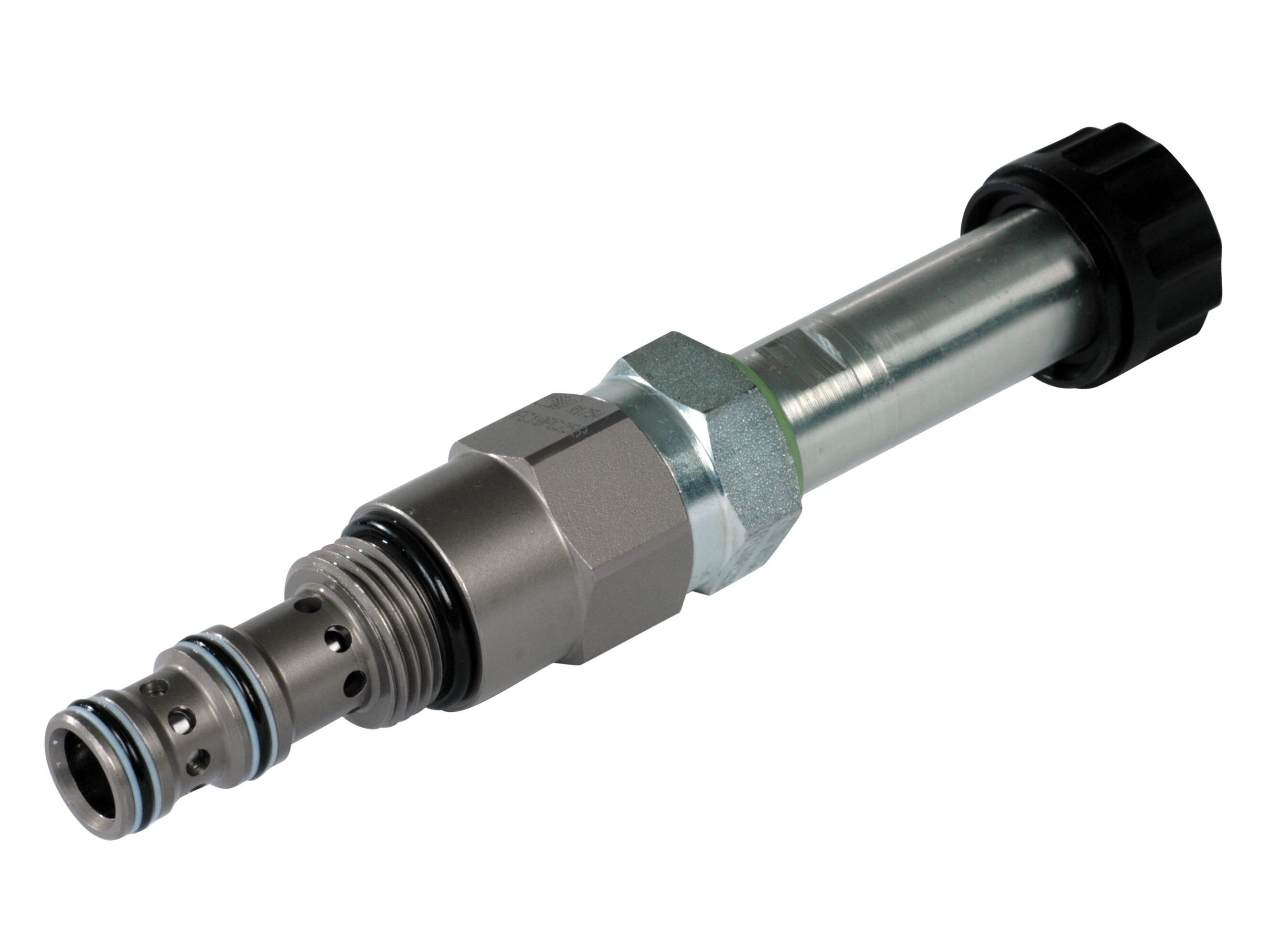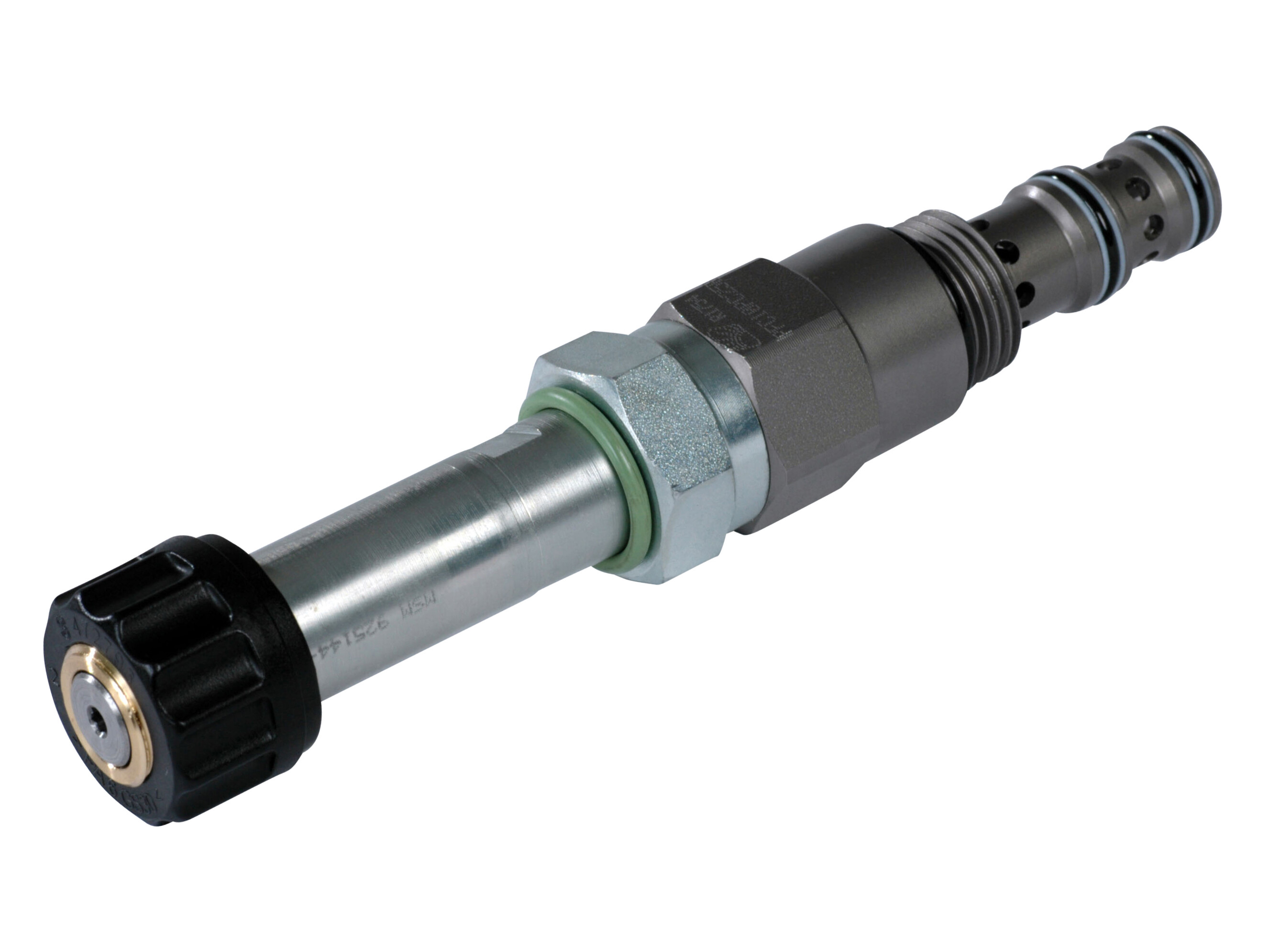 An internal compensating spool ensures that the output flow at port 3 remains constant, regardless of changes in differential pressure between port 1 and 3 or pressure at the bypass port 2. Increasing the current to the coil will increase the priority outlet flow.