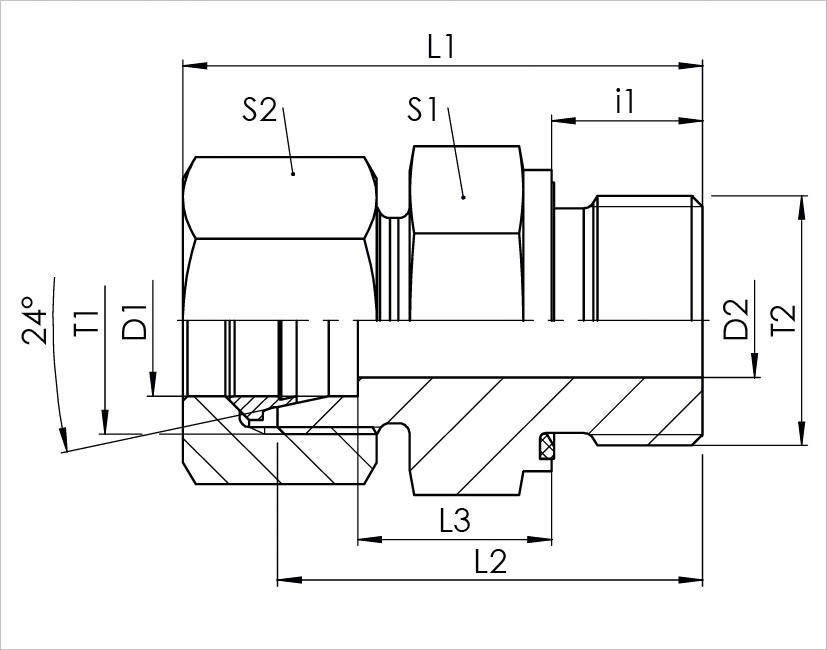 Stud fitting- ø28L x 3/4" BSP - WD seal - AISI316