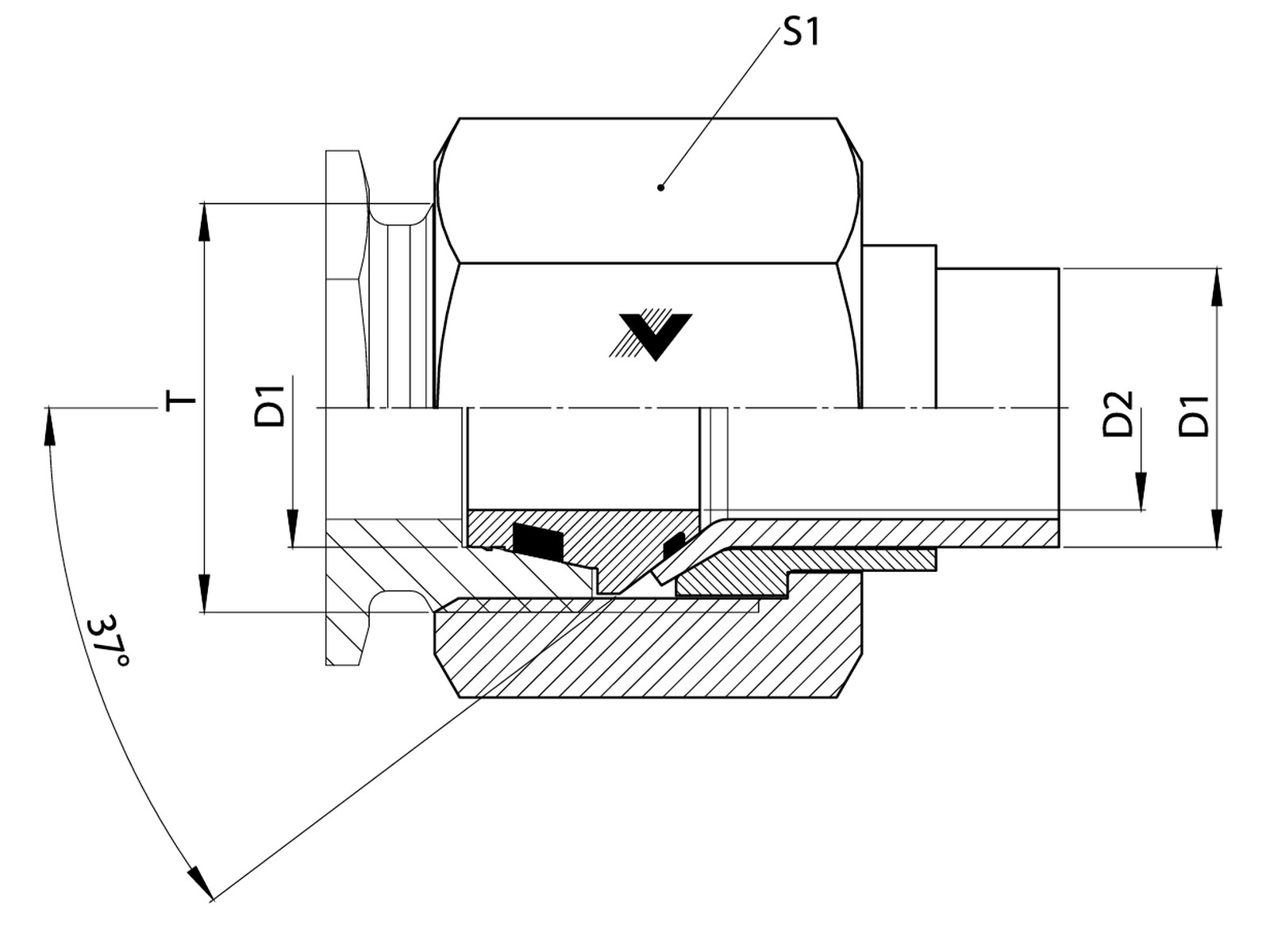 Flaring adaptor - 38S - AISI316