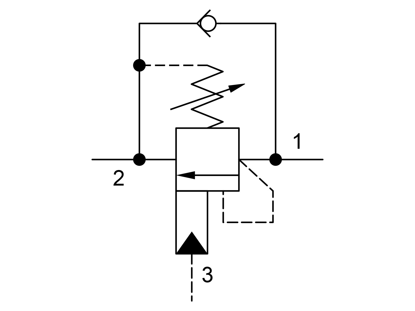 Counterbalance valves with pilot assist are meant to control an overrunning load. The check valve allows free flow from the directional valve (port 2) to the load (port 1) while a direct-acting, pilot-assisted relief valve controls flow from port 1 to port 2. Pilot assist at port 3 lowers the effective setting of the relief valve at a rate determined by the pilot ratio. Other names for this valve include motion control valve and over-center valve.