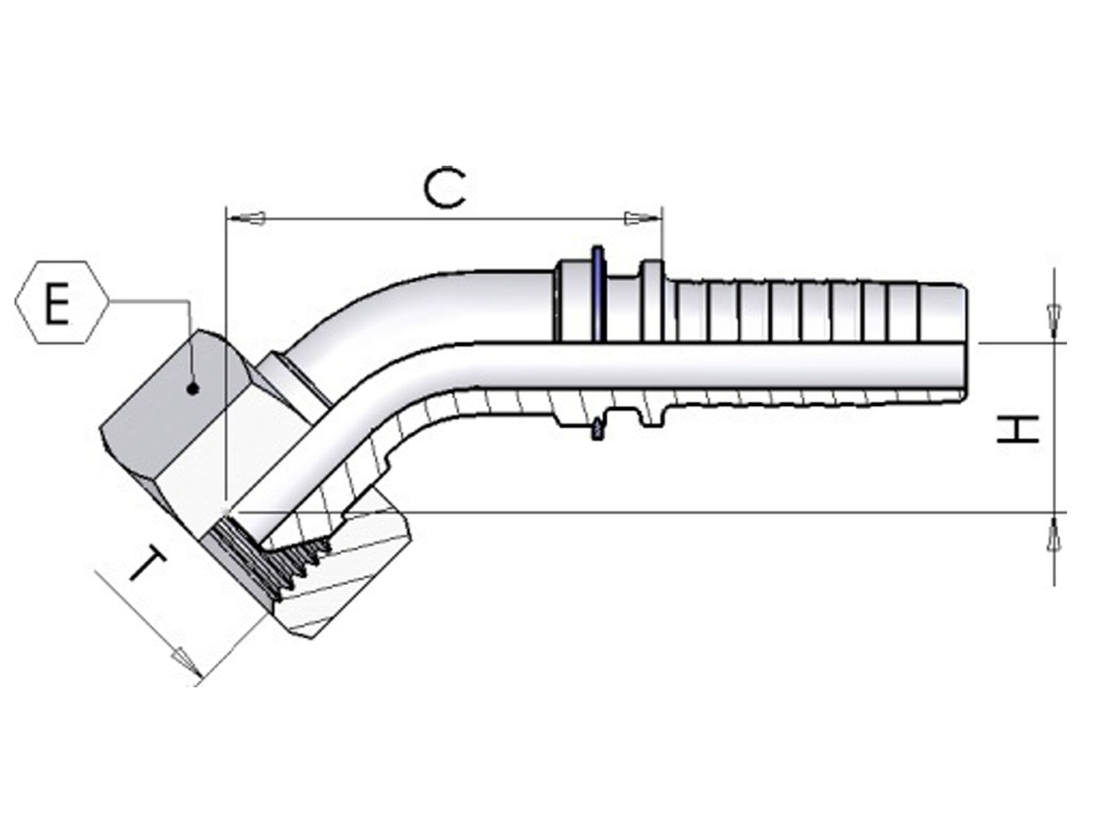 Metric union nut, 24° cone face, 90° elbow, French