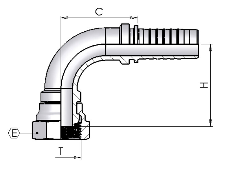 Connection: BSP female thread in nut, with 60° cone face and o-ring.