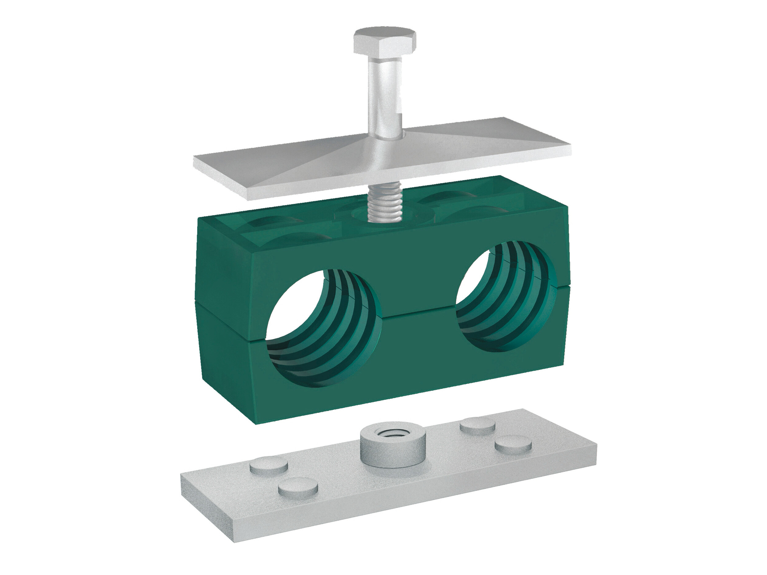 Twin clamp ø22-22 - Green Profiled Polypropylene - incl weld plate + cover plate + M8x45 bolts - SP-322/22-PP-GD-AS-M-W3
