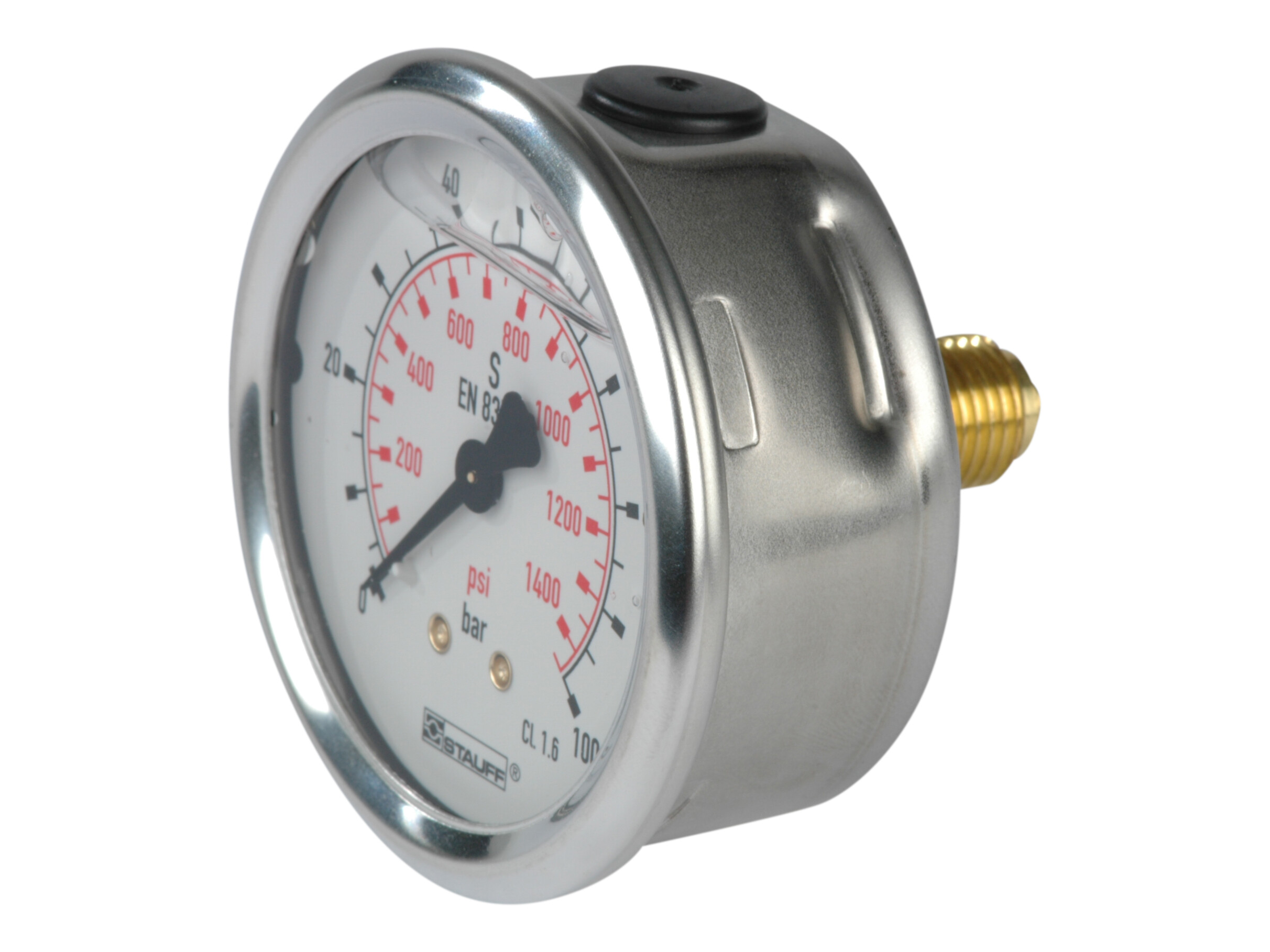 1/4" pressure gauge. Rear mount. Scale 0-1.6 bar