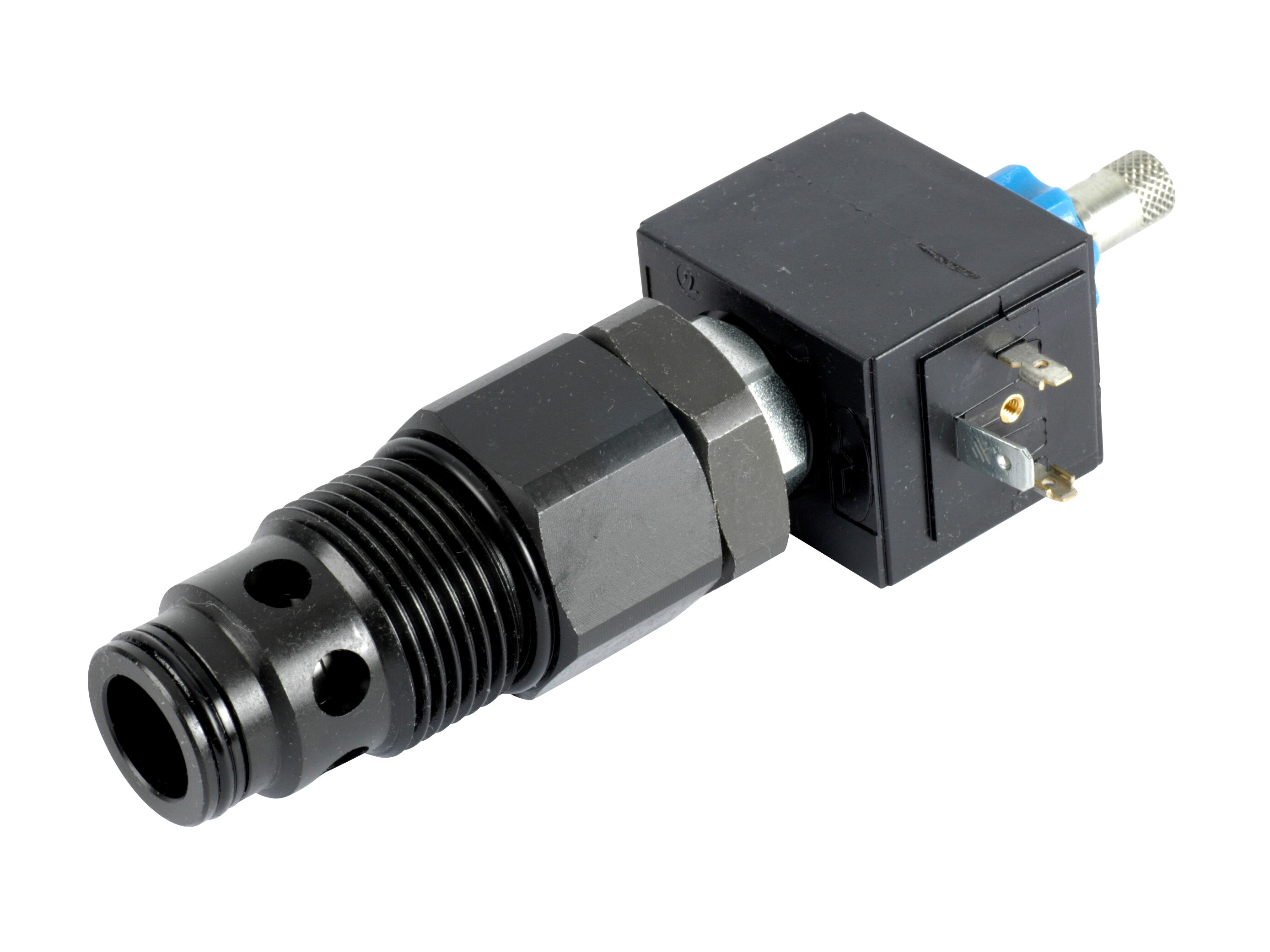 Solenoid controlled unloader valves for SD25 inlet section. Unloads pressure P to T.