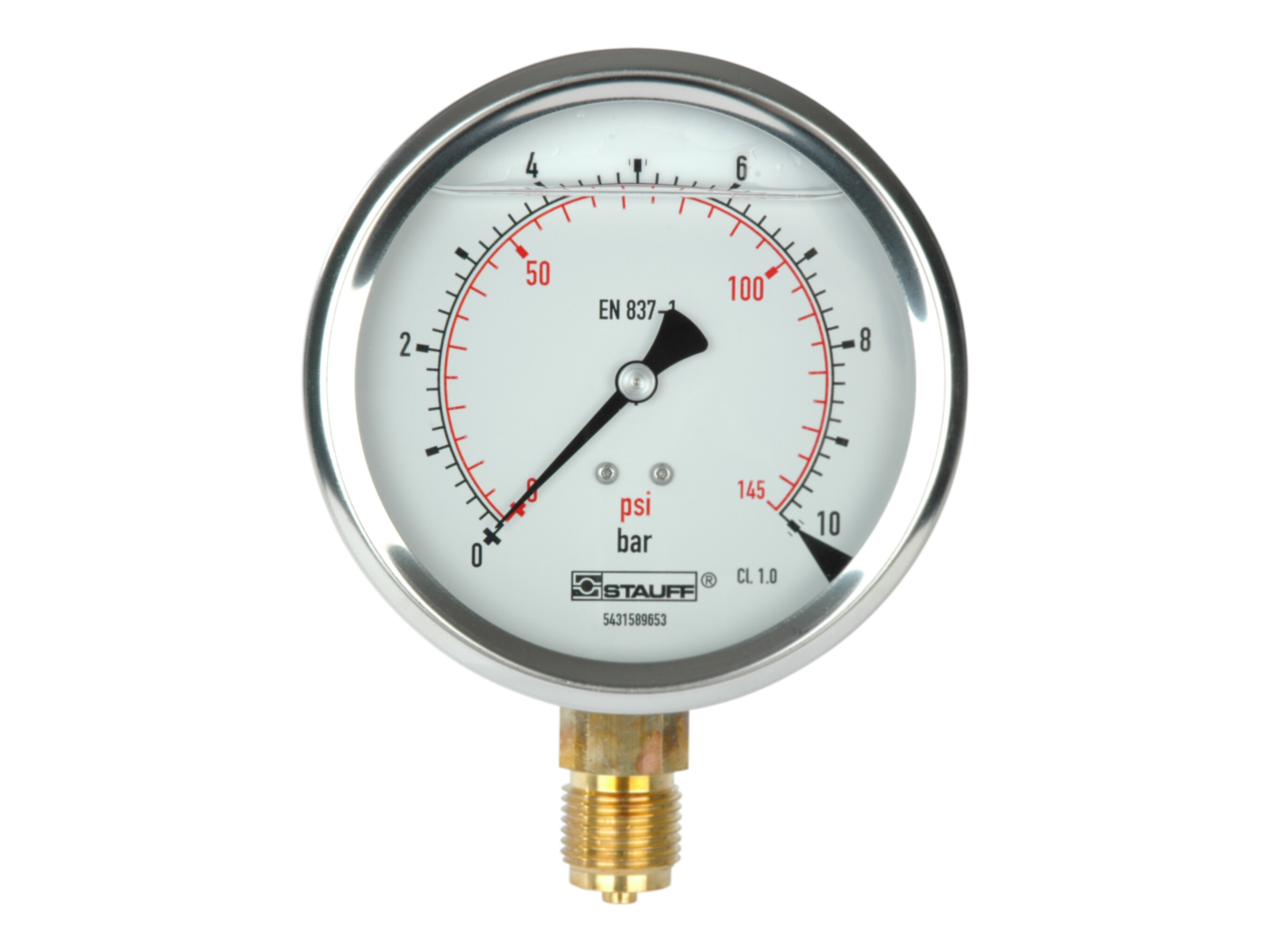 1/2" pressure gauge. Stem mount. Scale 0-10 bar |