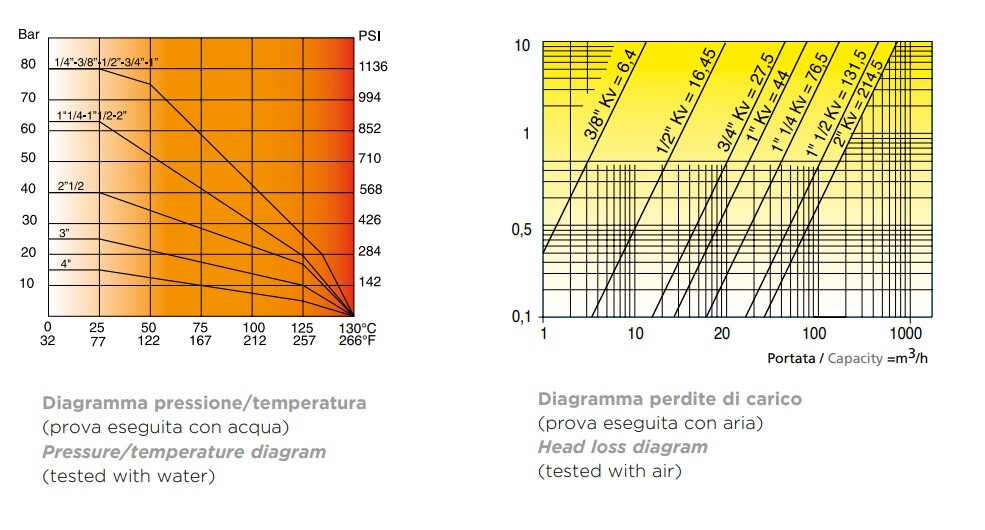 OMEGA-venttiilit on hyväksytty EN 331 -standardin mukaisesti OMEGA-venttiilellä on viralliset hyväksynnät useissa eri maissa kaasulle. Kierteet UNI EN 10226 (BSPT pyynnöstä). KÄYTTÖTKOHTEET Polttoainekaasu: - kaupunki kaasu - maakaasu - L.P.G. kaasu OMEGA palloventtiilit soveltuvat myös kuumalle ja kylmälle vedelle, paineilmalle, öljyille ja hiilivedyille yleisesti. TYÖPAINE Polttokaasulle 1^, 2^ e 3^ -perheelle max 5 MOP. Muuhun käyttöön PN 80 (1/4”) - PN 16 (koko 4”). Katso paine/lämpötilakaavio. LÄMPÖTILARAJAT Polttokaasulle -20°C - +60°C. Muuhun käyttöön -20°C - +130°C. Katso paine/lämpötilakaavio.