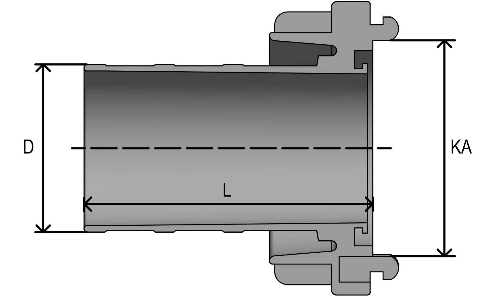 Storz coupling with long neck. For suction and pressure purposes.