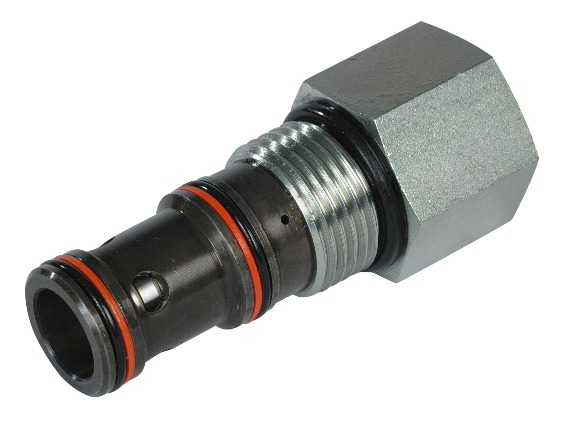 This is a 3-ported, normally closed, pilot to close spool type logic element. By opening port 3 to tank, flow can pass from port 1 to port 2. Flow is blocked from port 1 to port 2 unless the pressure is high enough in port 1 to overcome the spring set pressure.