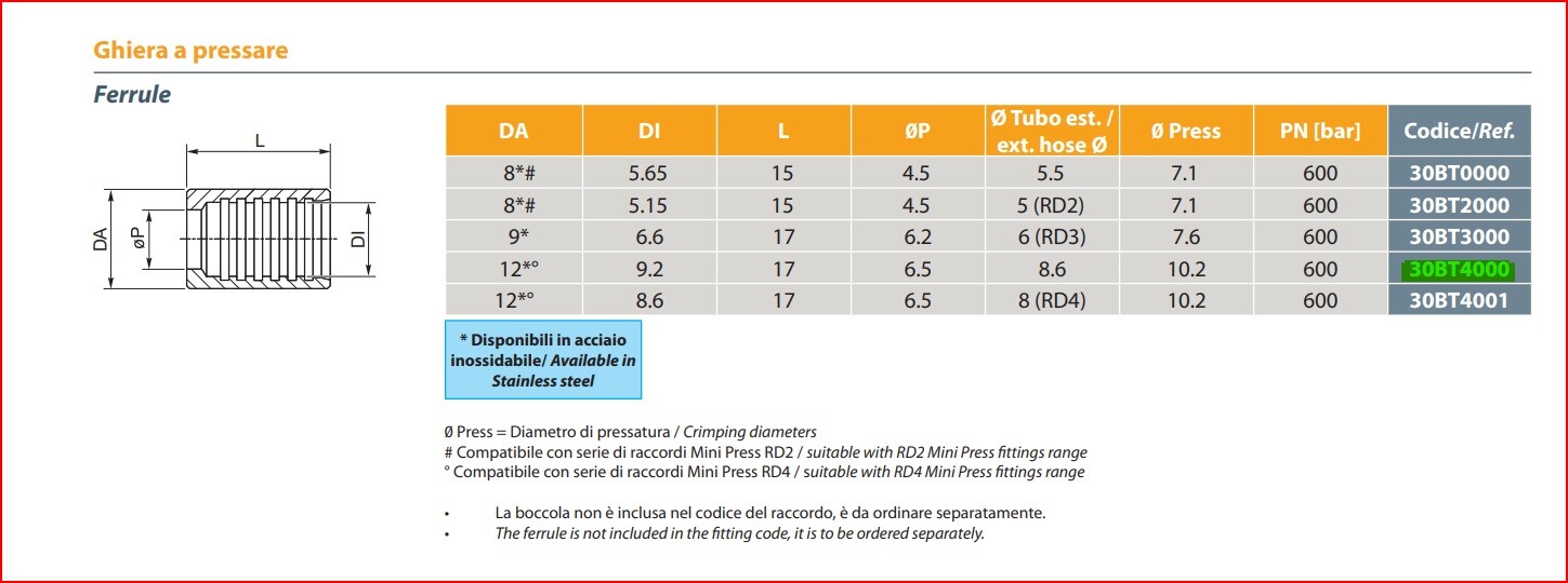 Cutting ring fittings, stainless