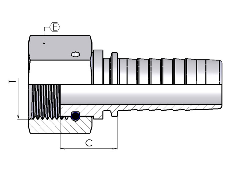 Sealing: Metal against o-ring (90shore) on counterpart.