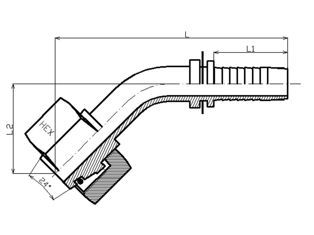 Connection: MM female thread and 24° cone face with o-ring (DIN2353).