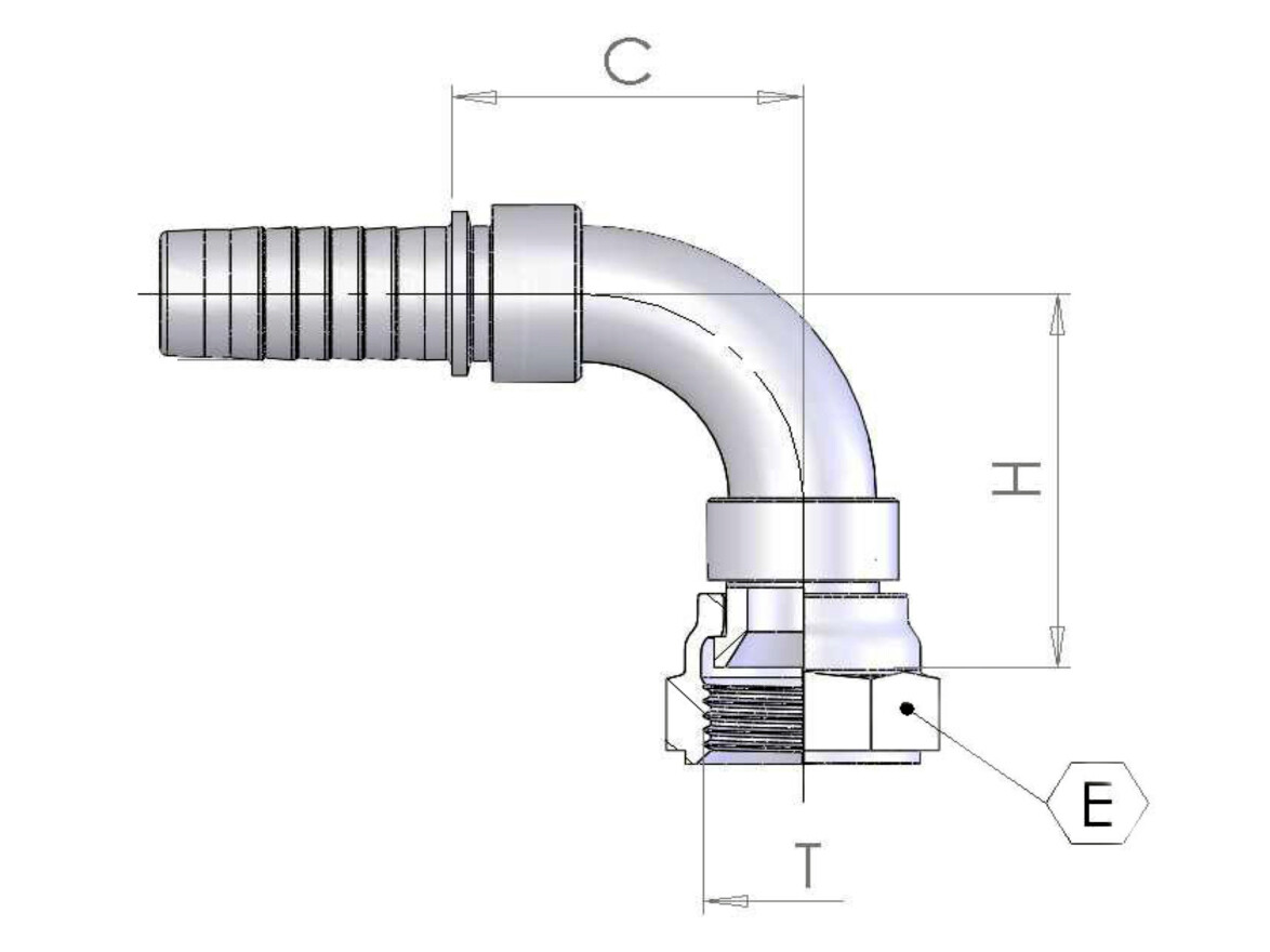 Connection: BSP female thread in nut, with 30° cone face.