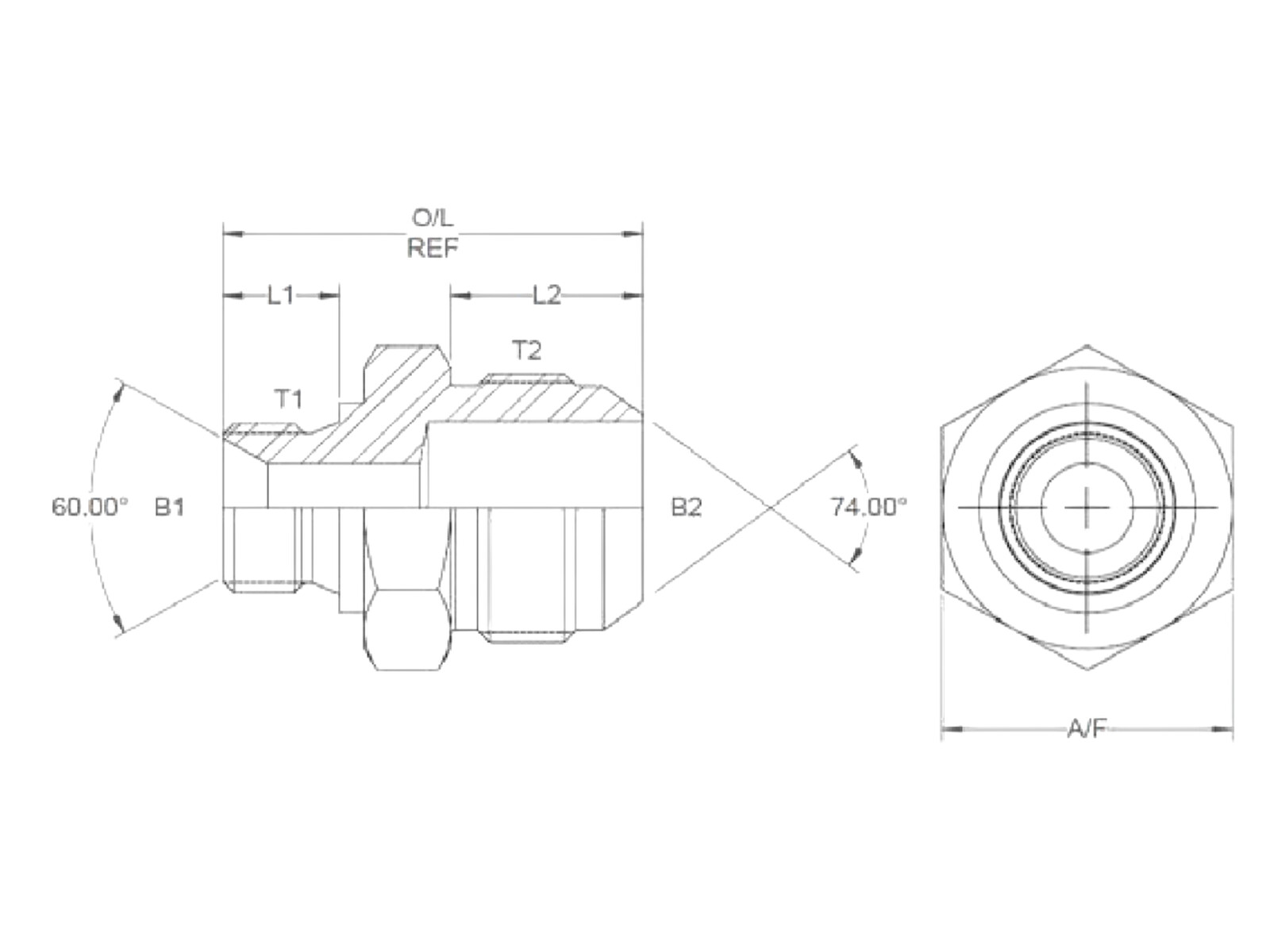 Adapter BSP male 60° seal face x JIC union nut - 6016