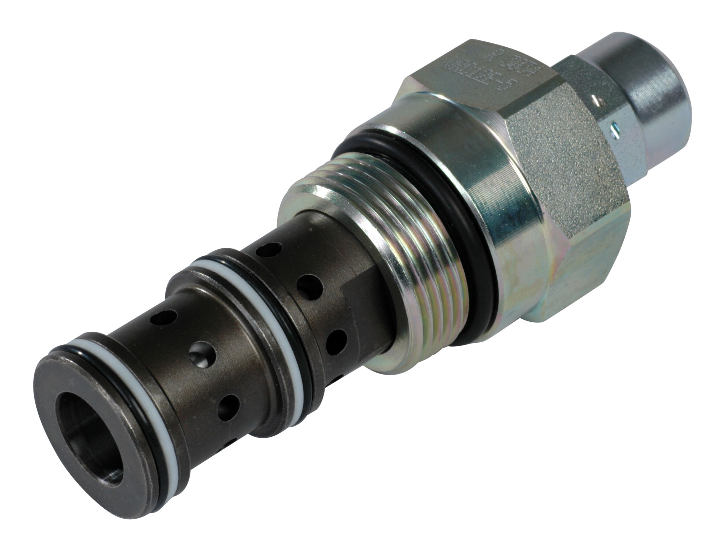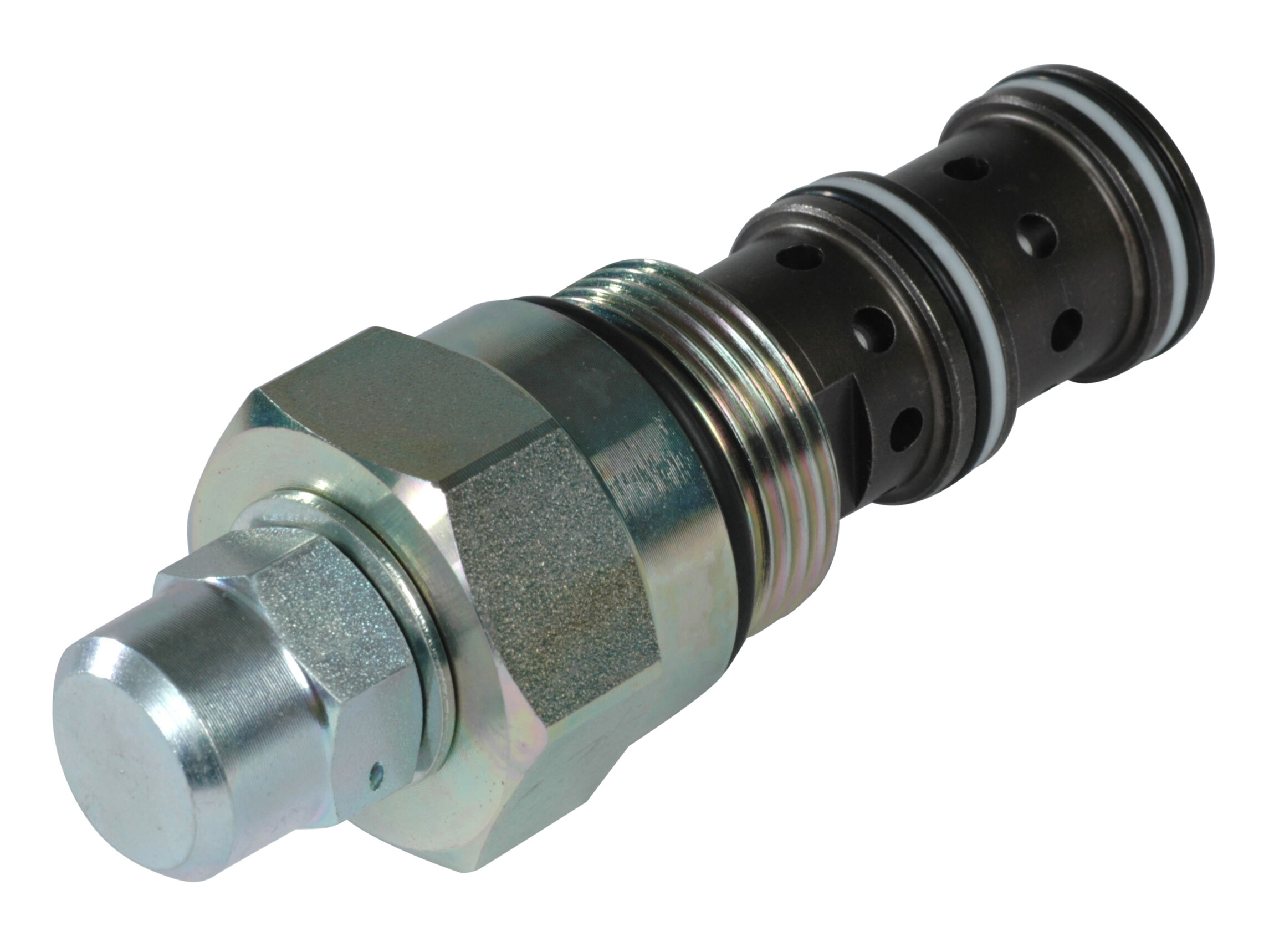 Flow enters at port 1 and passes across a fixed orifice in the spool, which creates a pressure drop. This causes the spool to move back against the spring, which then restricts the outlet flow. Port 1 then opens to port 2 to allow excess flow to pass. The regulated flow will always take priority and remains constant if the working pressure is higher in either port 2 or port 3.