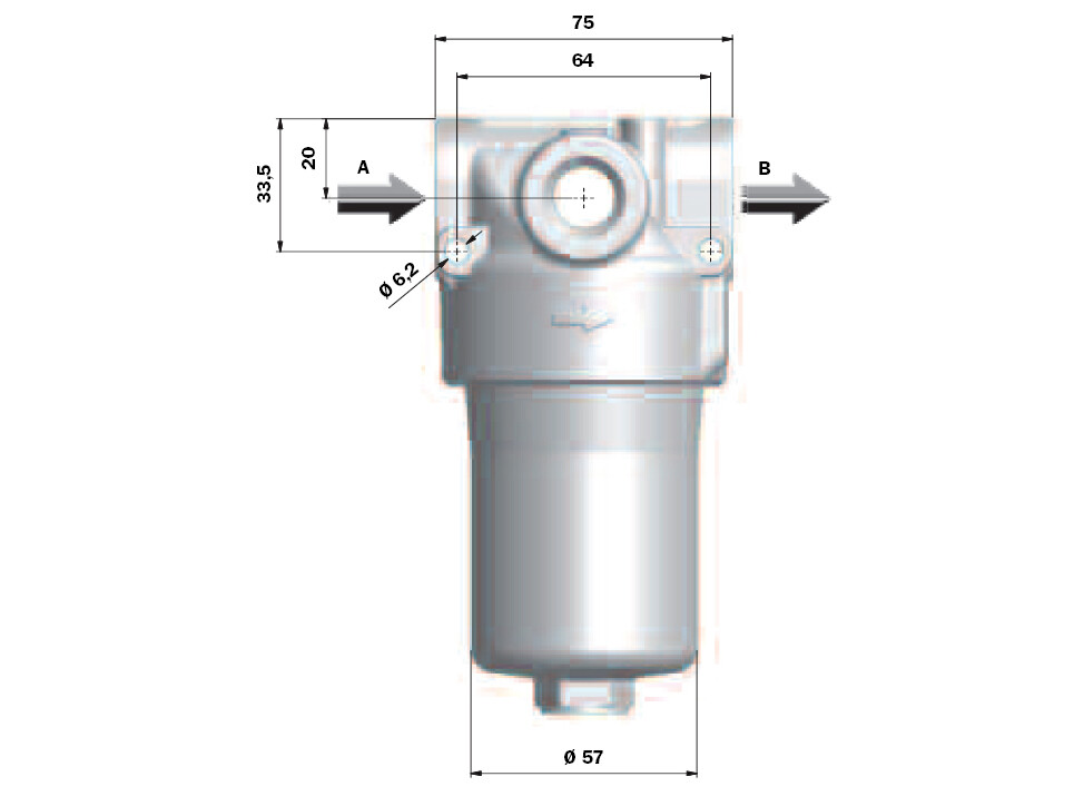 Built-in by-pass valve, ensuring flow in case of flow through the filtrationelement is blocked due to contamination.