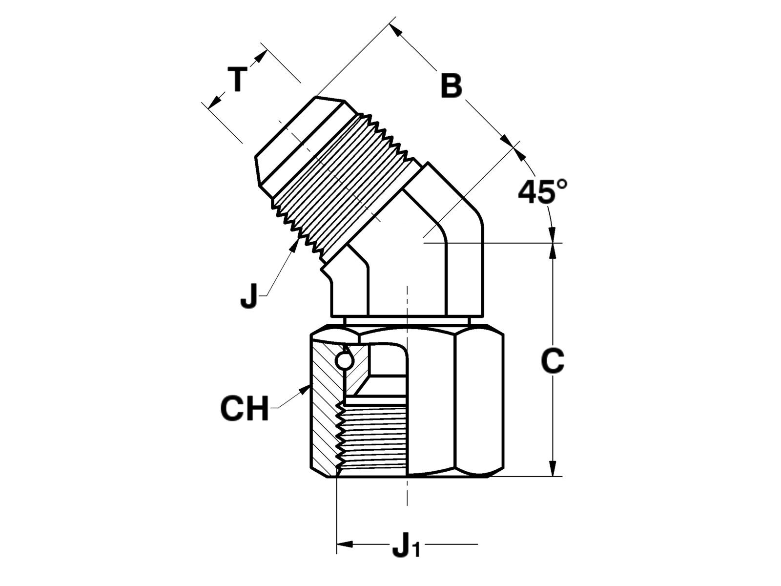 Elbow adapter 45° JIC male x JIC union nut