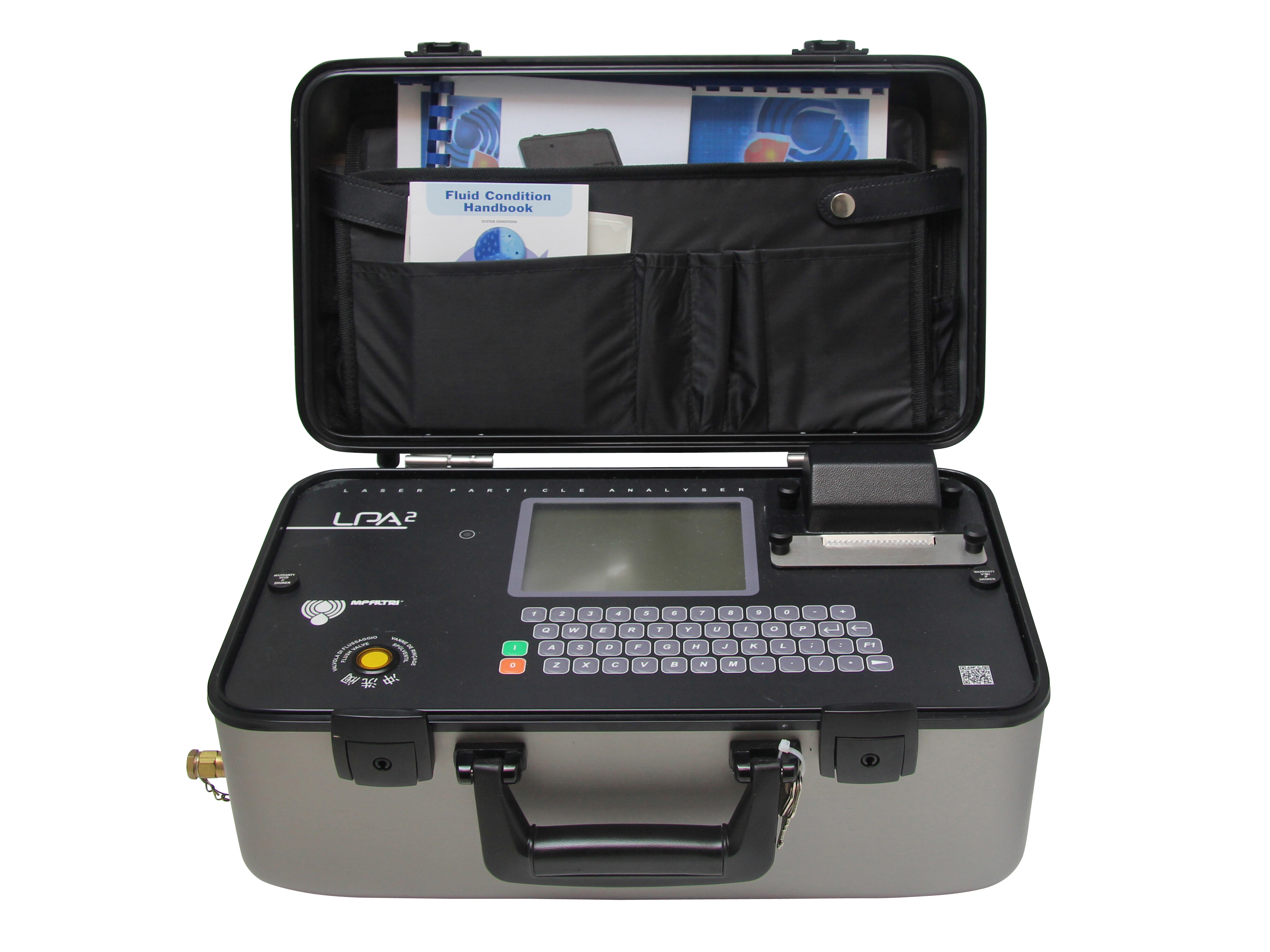 LPA2 is a precise, lightweight and fully transportable test unit for both onsite and laboratory use. LPA2 automatically measures particle pollution, humidity and temperature in several different hydraulic fluids.