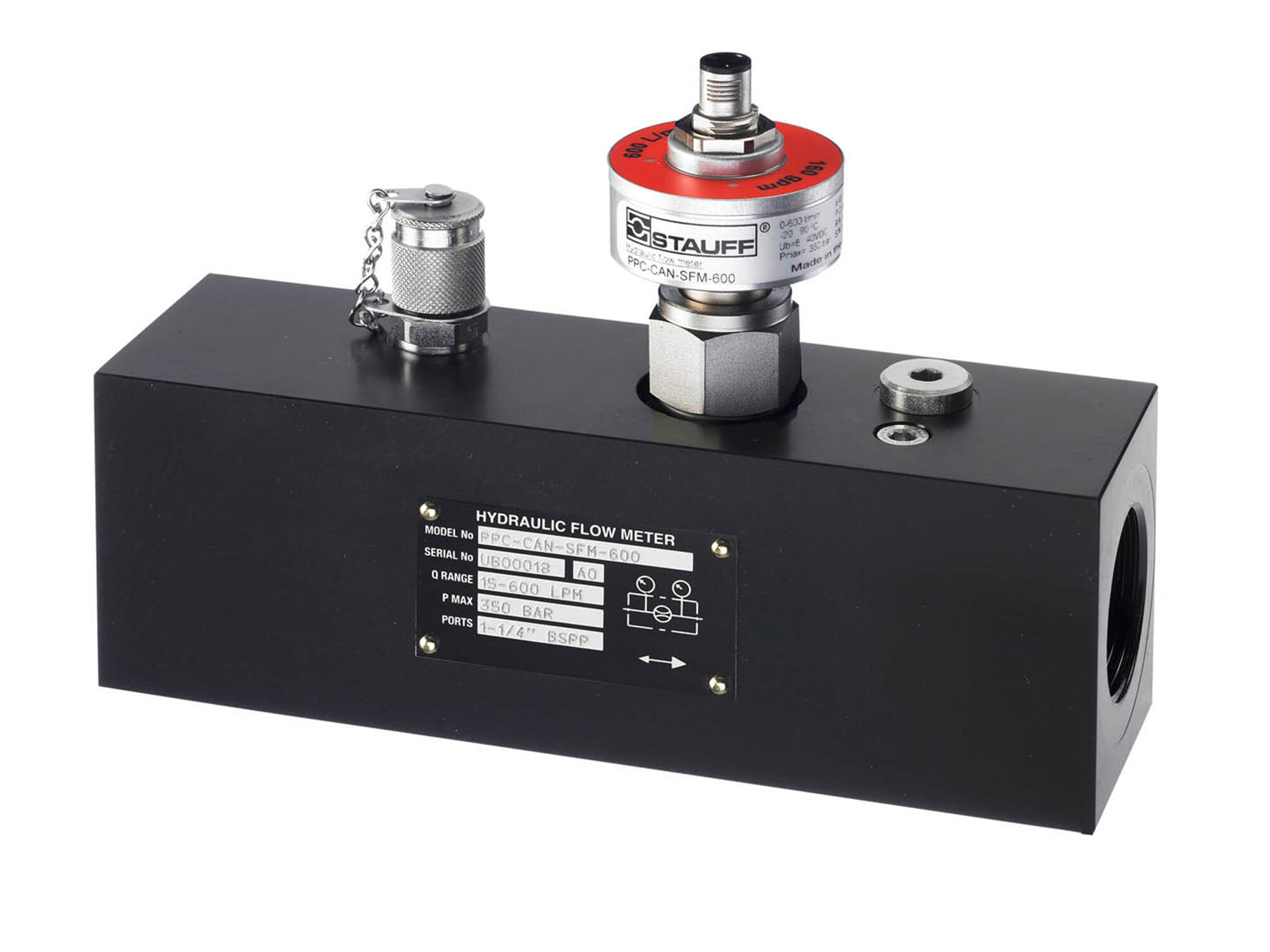 Turbine type flow meter. Measures flow regardless of flow direction.