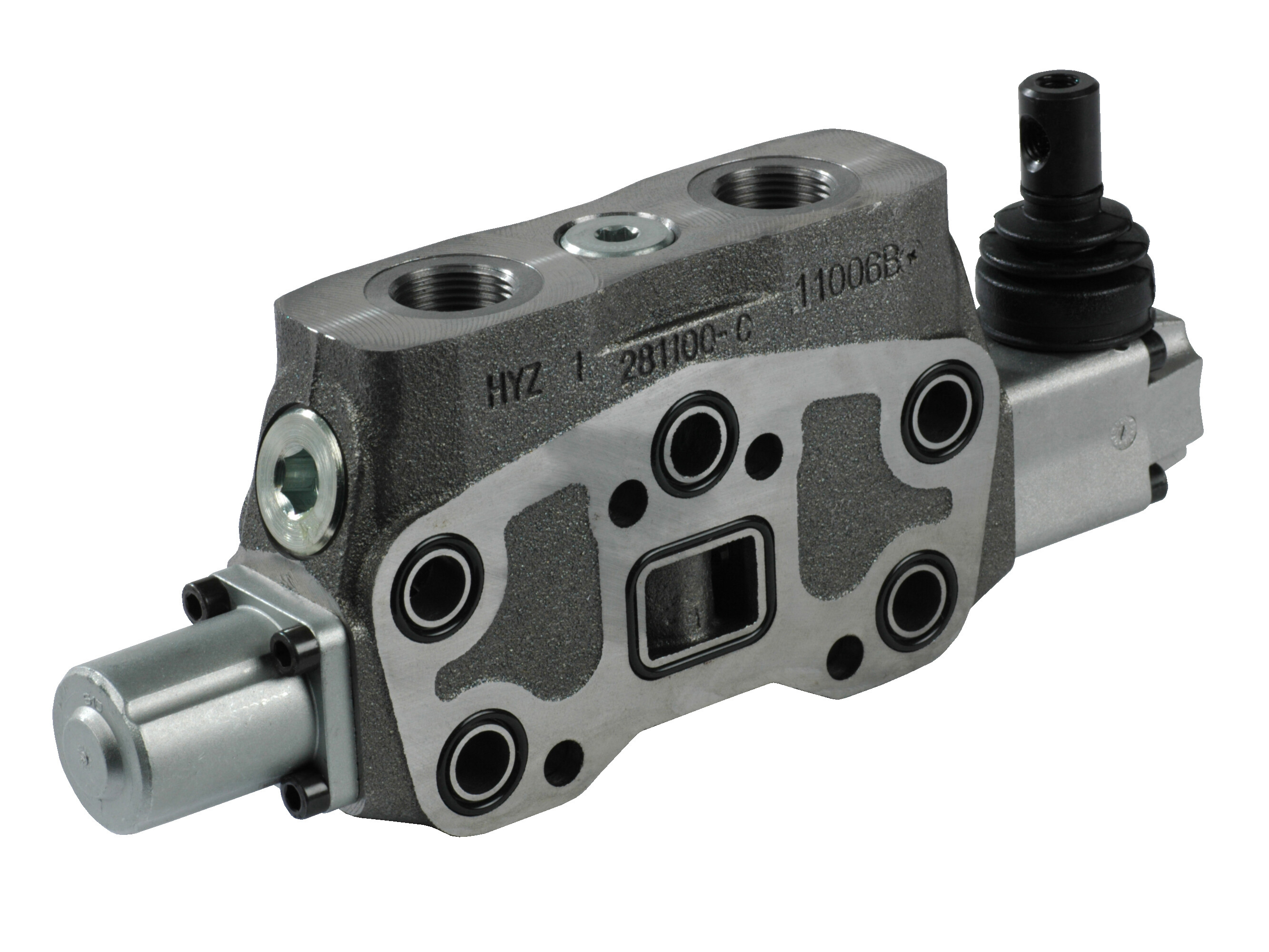 Complete parallel circuit SDS180 valve section with: double acting spool, A and B closed in neutral position, spring centered.