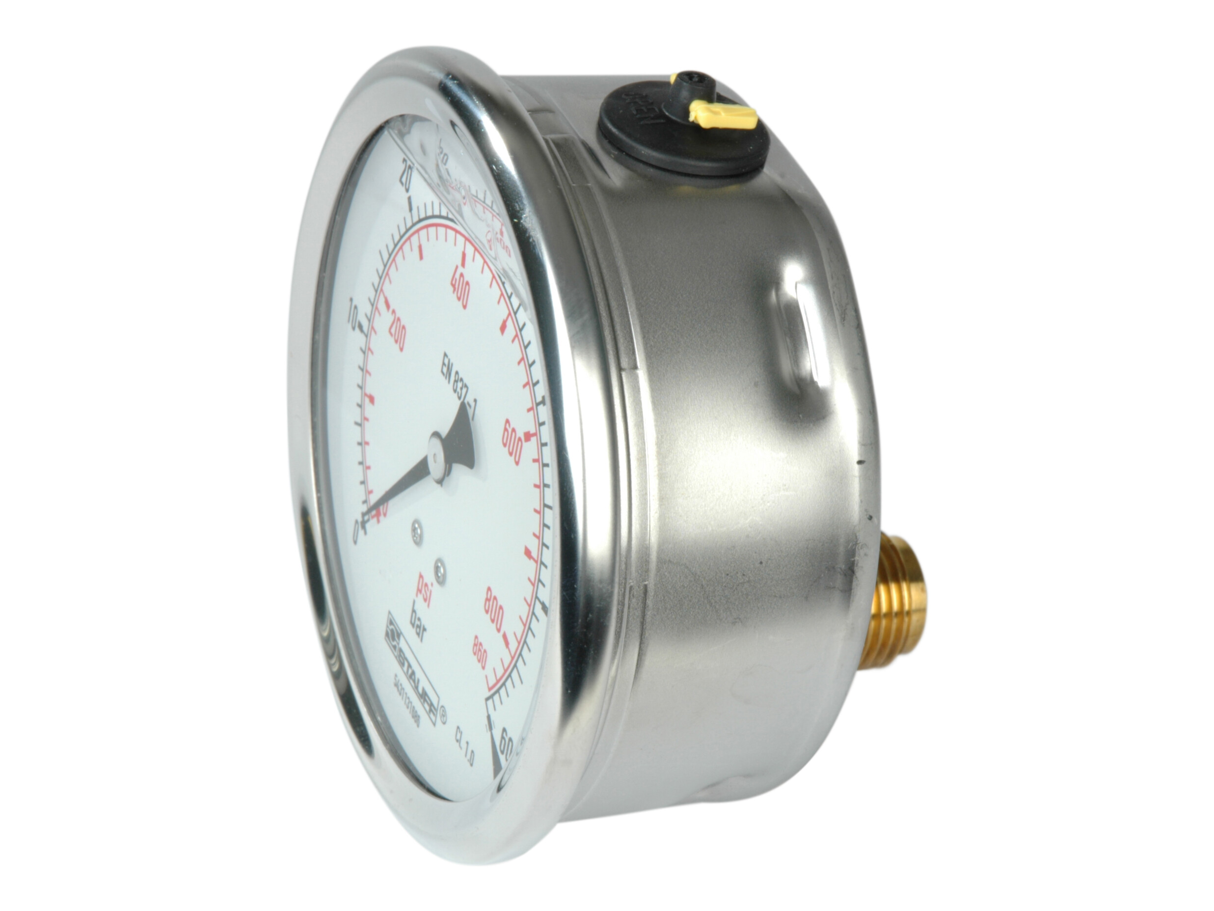 1/2" pressure gauge. Rear mount. Scale 0-60 bar