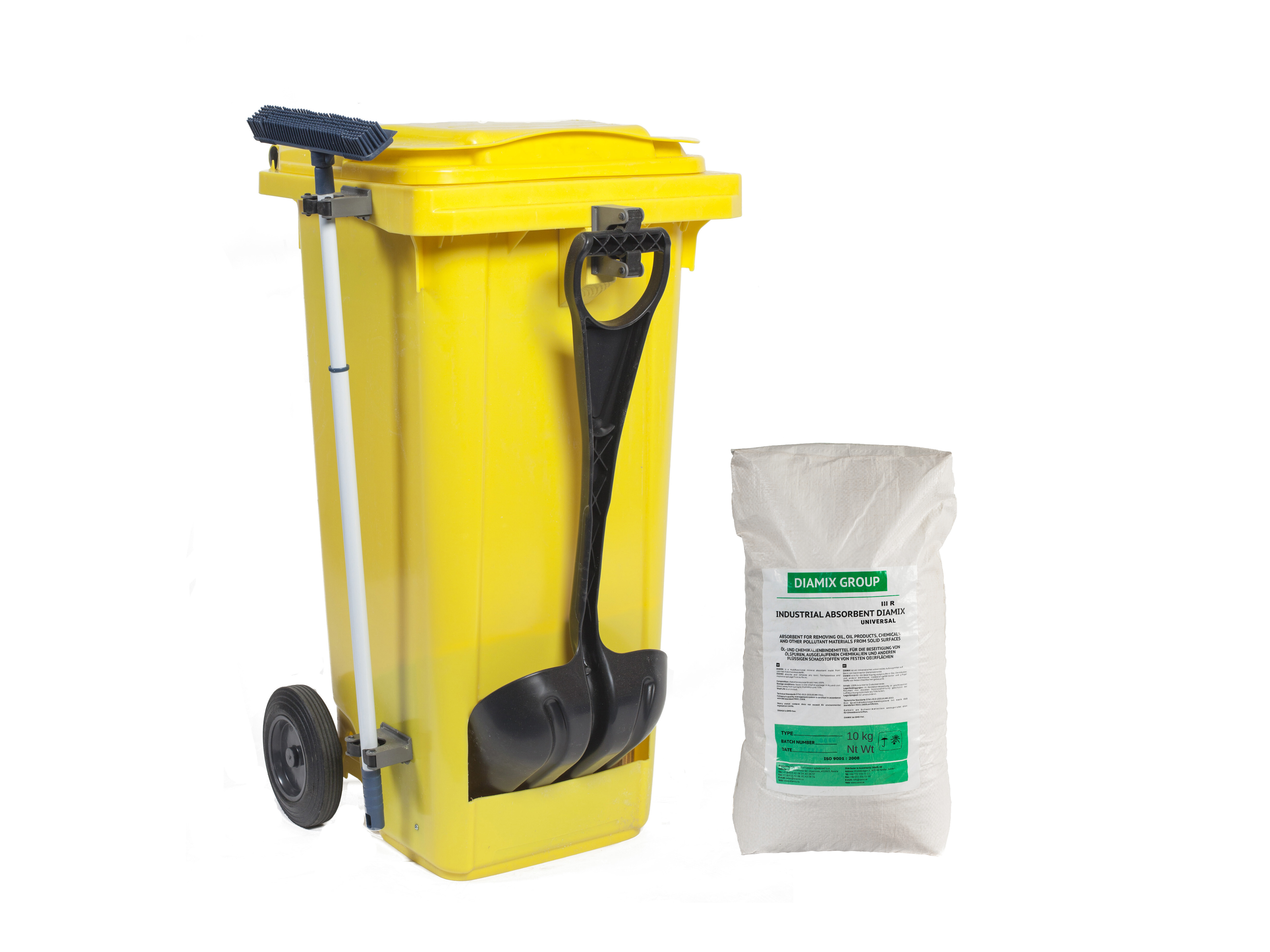 Saneringsvagn, granulat, spade, borste, spillförvaringspåsar
