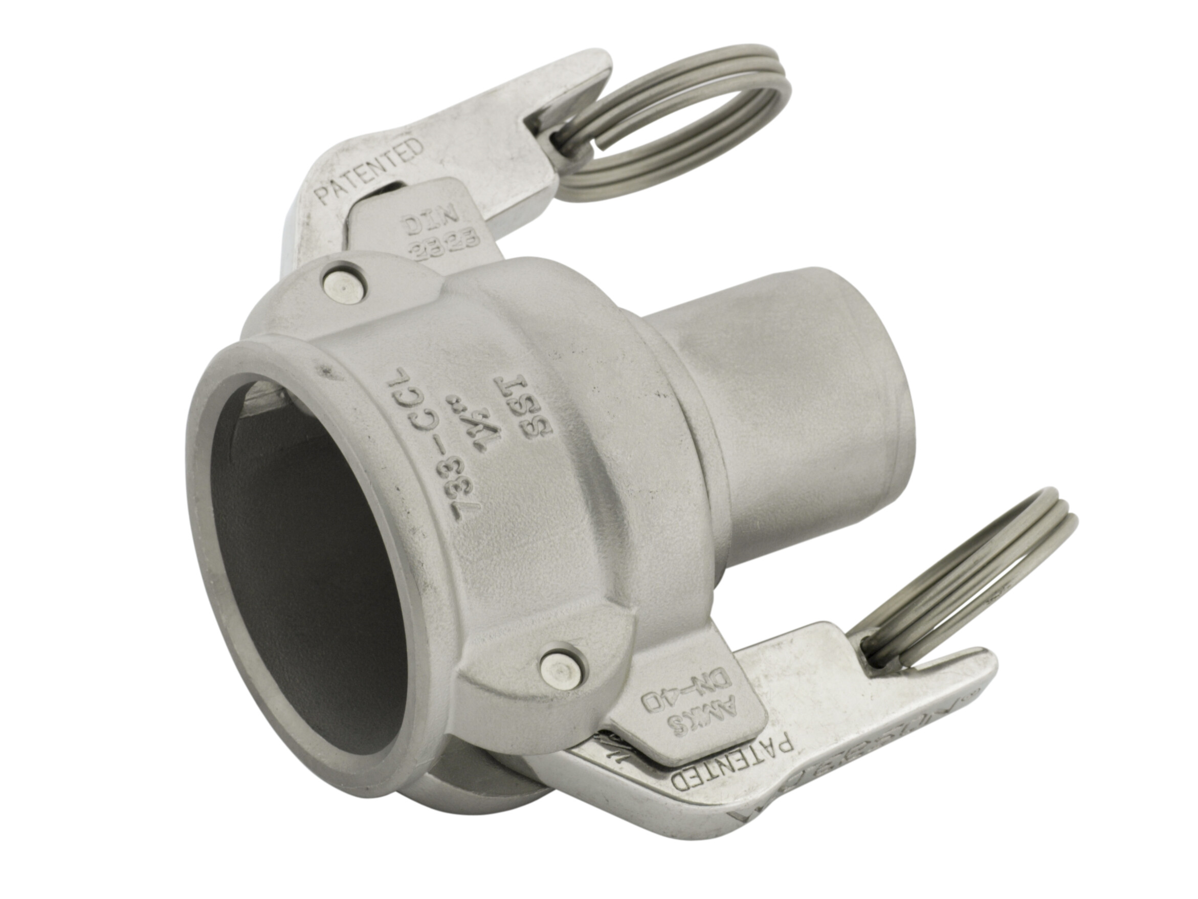 Cam-safty coupling-SS. Female with hose pipe.