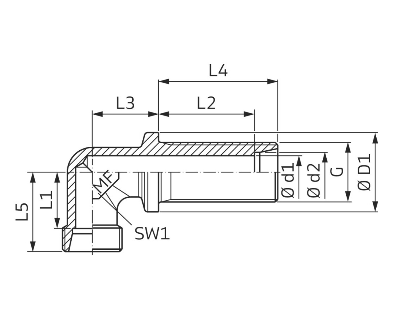 Elbow bulkhead fitting 90° - ø12S - w. counter nut