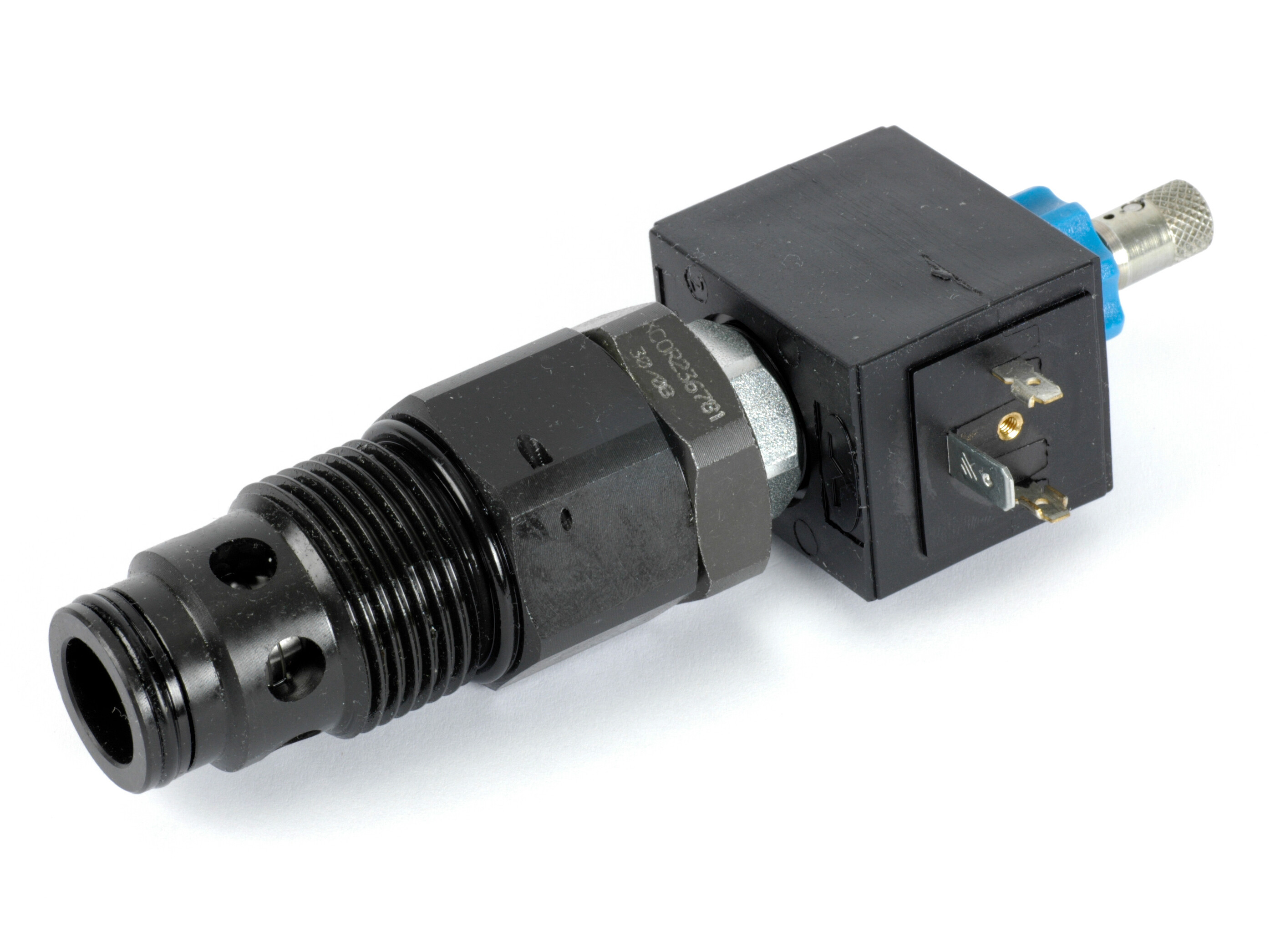 Solenoid controlled unloader valve for SD25 inlet section. Unloads pressure P to T.