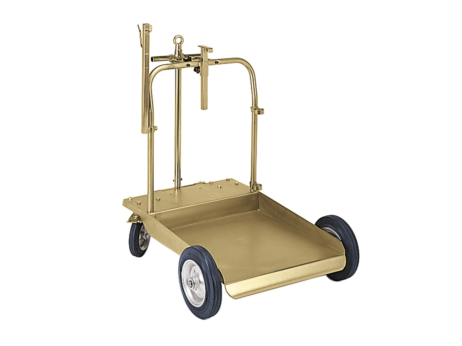 Fatvagn med två fasta hjul och två svängbara. För fat 180-220 kg. För fat med en diameter på 61,5 cm. Har fäste för slangvinda.