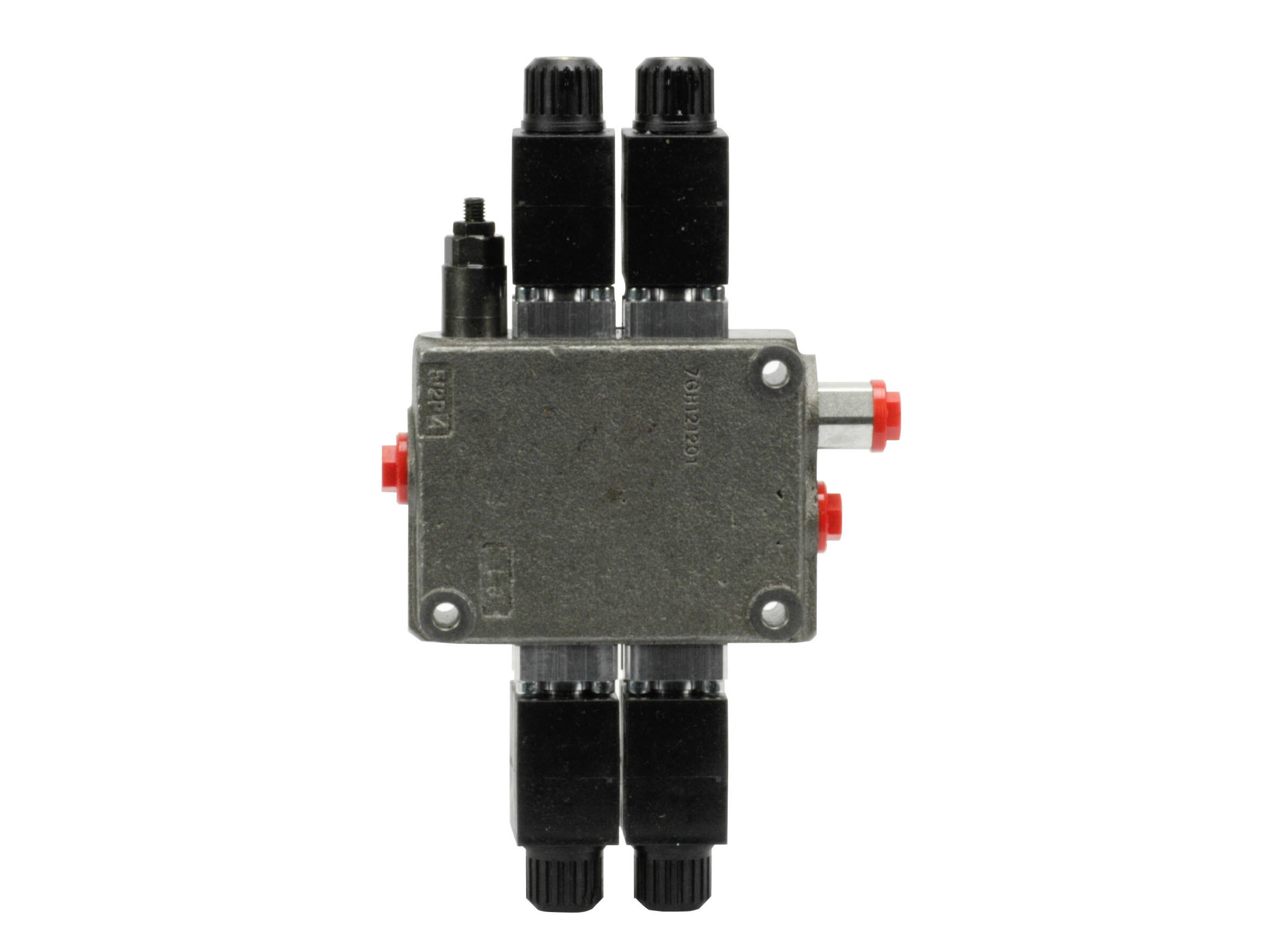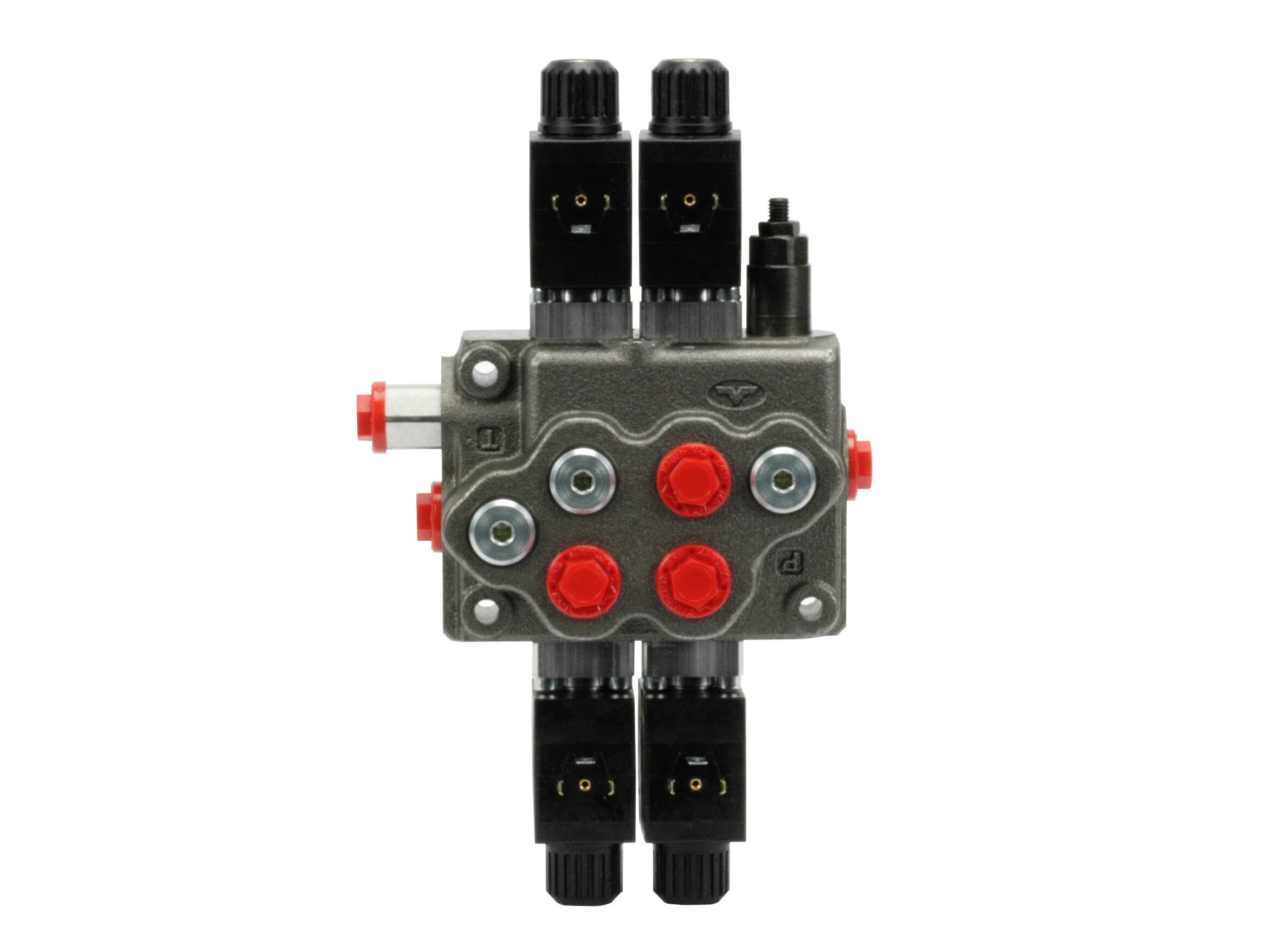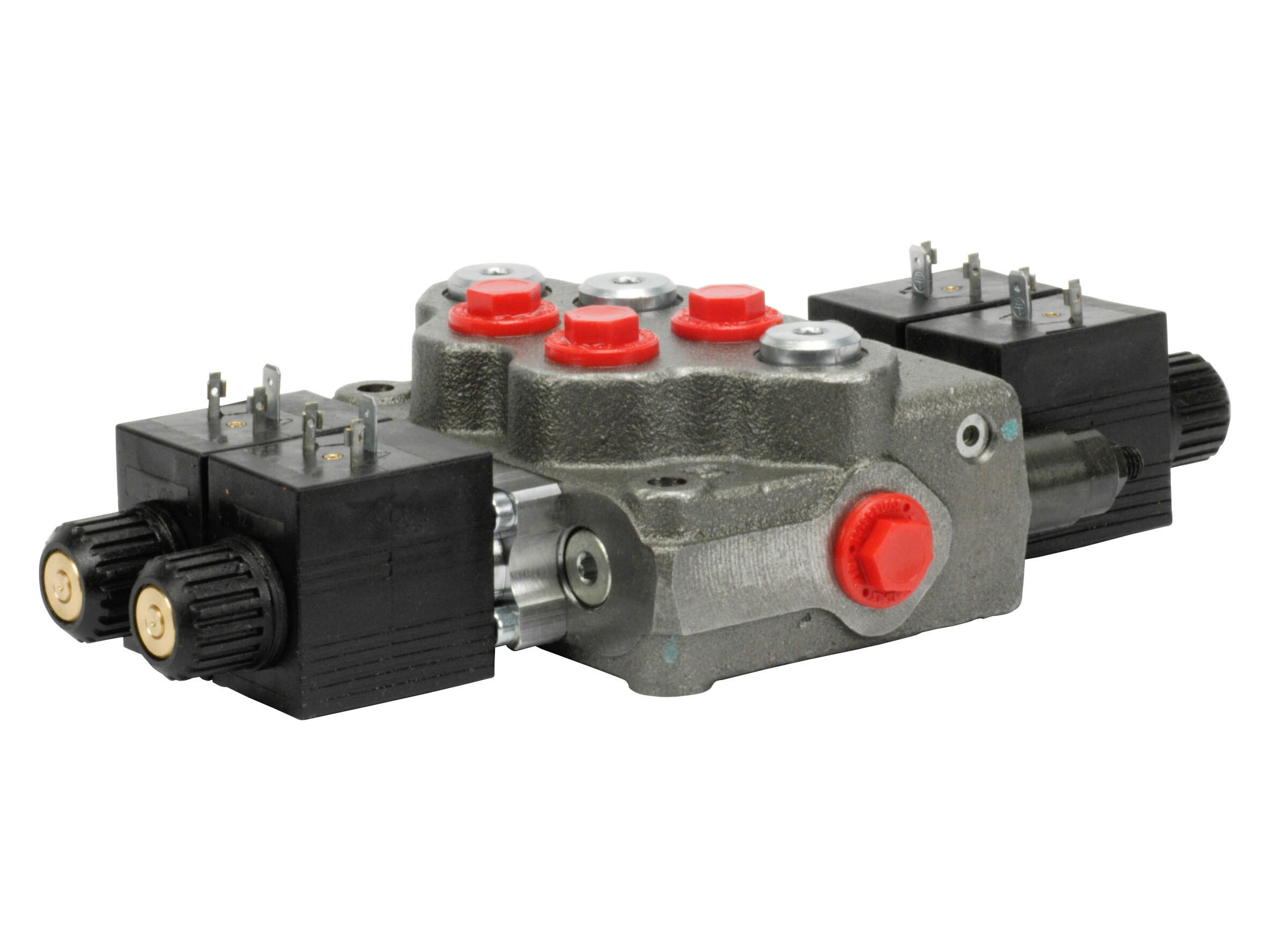 2-section SD5 monoblock valve with built-in pressure relieef valve and 2 spools in parallel. Solenoid activated (12 Vdc).