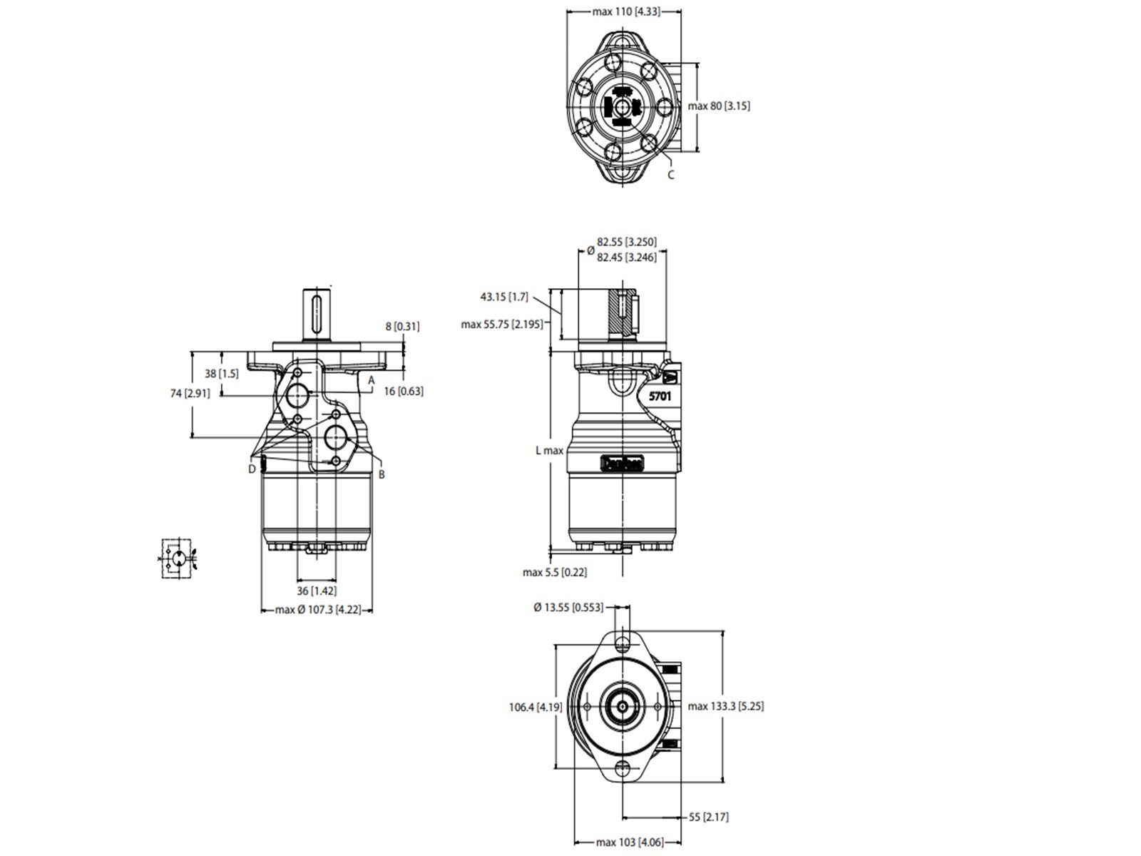 Akselbelastning radial (midt) maks.