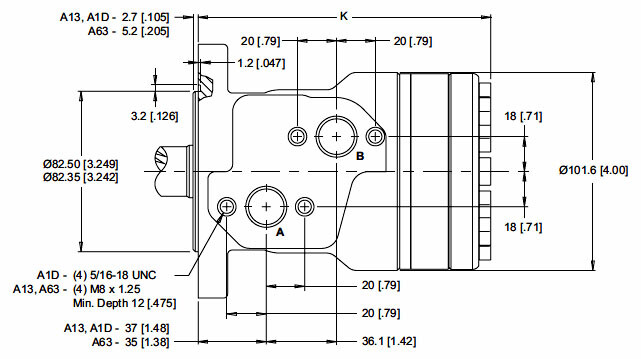 Motor OMP-X 100 - 25mm shaft - drainport - HPS225