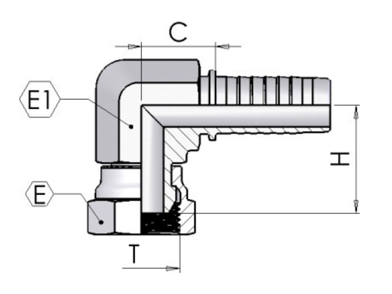 Kompressibel slangkoppling med 90° BSP invändig gänga (smidd).