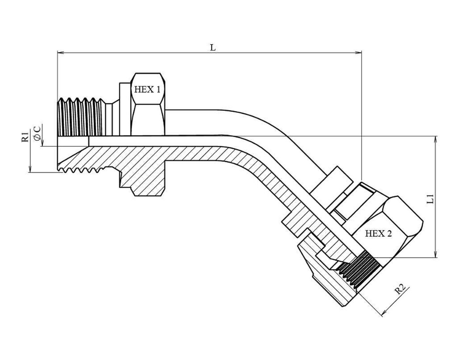 Adapter 90K, Utv-G 1/4'', Ställbar